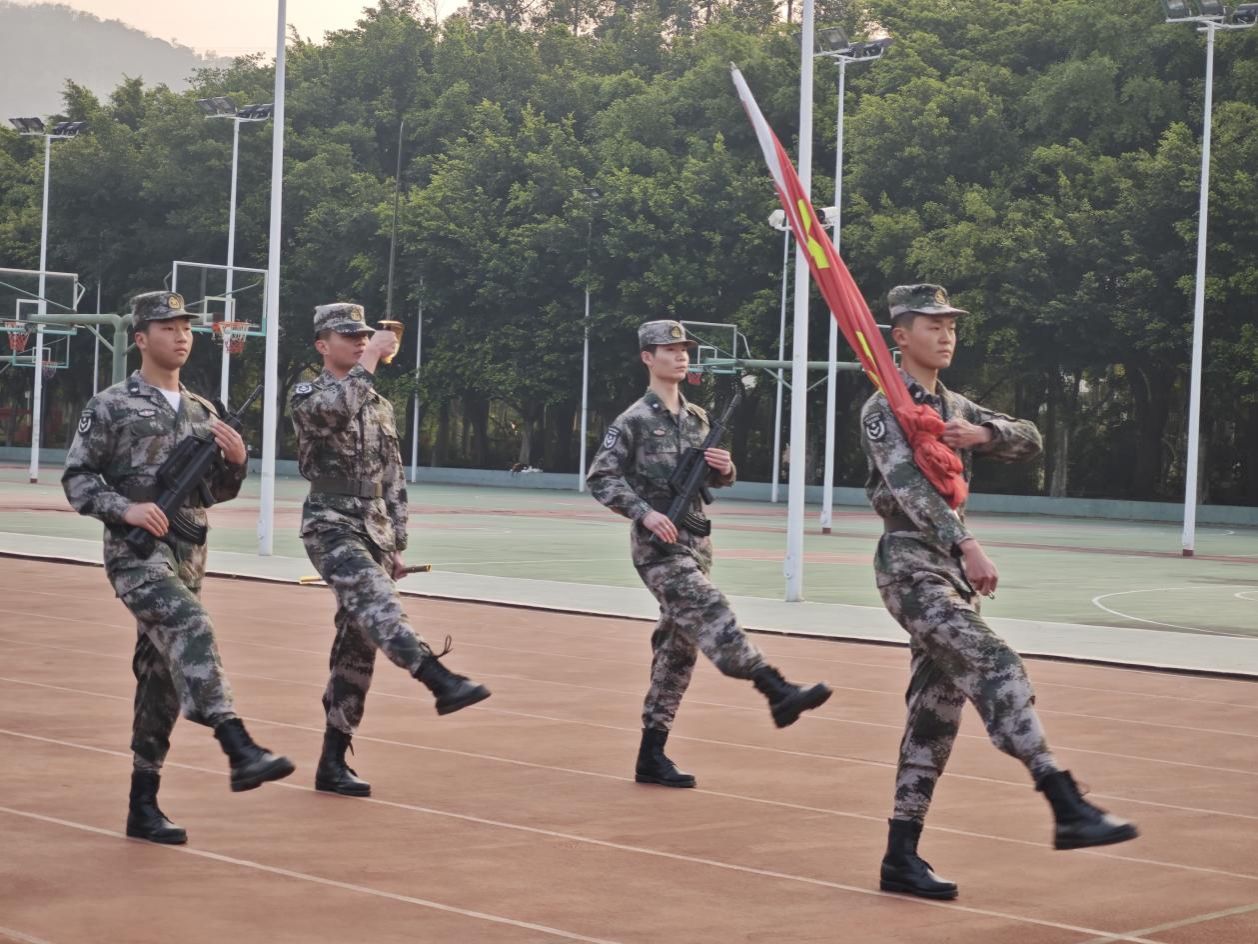 晨光乍现,伴随着嘹亮的口号声,有一群人,身着迷彩服、昂首挺胸,踏着铿锵的步伐、走着整齐的队列,将鲜艳的国旗升上了校园上空,用活力唤醒了沉睡的农职院,他们就是信息工程学院国旗护卫队。一份信念、一份坚持、一个习惯,一种责任。国旗护卫队不仅仅由退役大学生组成,也承载着每一位想积极上进同学的梦想,部门成员团结友爱,积极向上,手中紧握的是国旗,肩上扛着的是责任,心中燃烧的是热爱。国旗护卫队的意义不只是为了护卫国旗,更是为了校园的爱国主义教育。