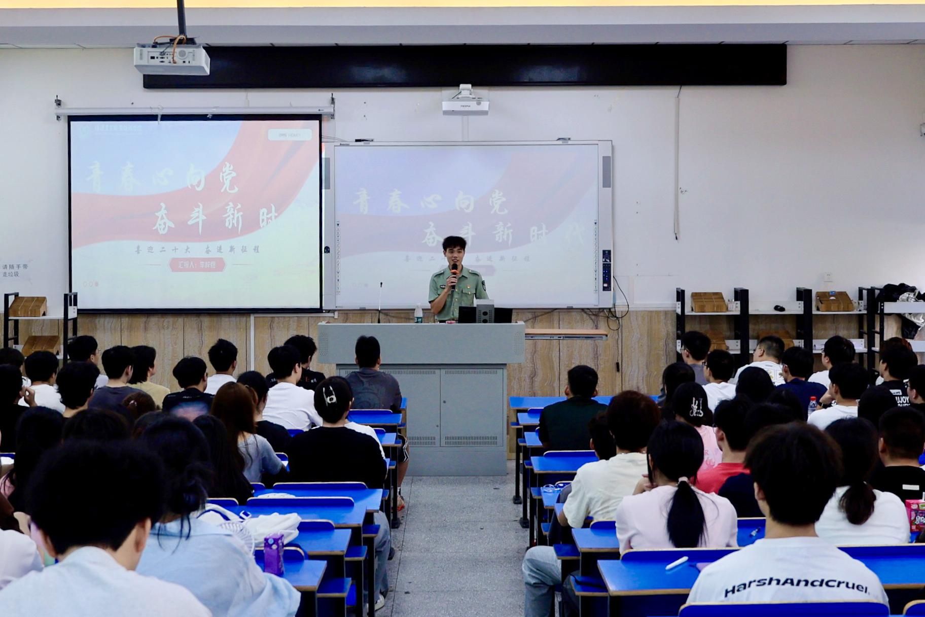 厦门华天涉外职业技术学院信息技术学院团总支副书记、思政辅导员罗健佳结合个人经历为大家深情讲述“追光的人,终会万丈光芒”,他激励大家做一个努力上进、做一个有家国情怀的青年,为国家、为中华民族伟大复兴贡献青春力量。