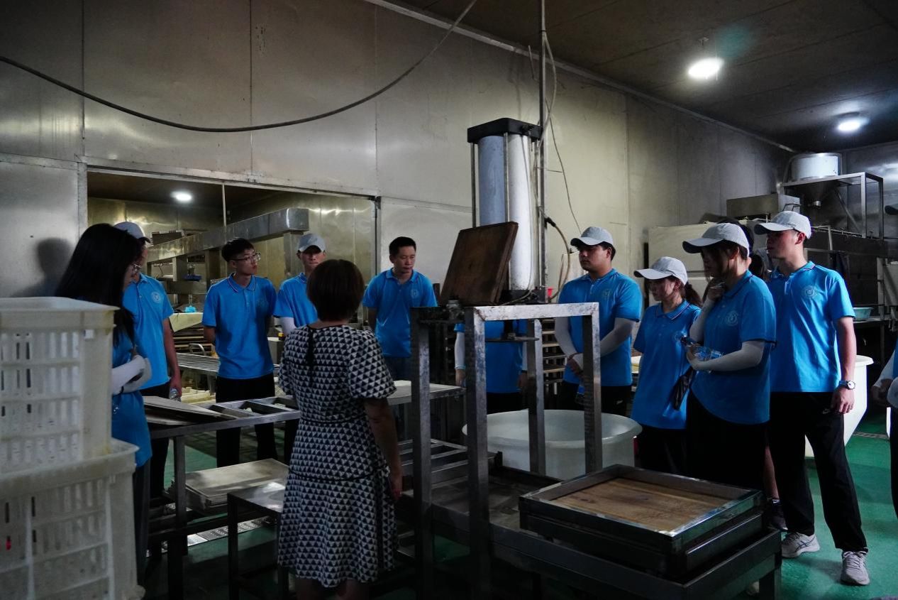 游浆豆腐是泰宁百姓和各地游客深爱的美食。7月10日下午,实践团走进上青游浆豆腐制作工坊,深入了解游浆豆腐的制作工艺。游浆豆腐为纯手工制作,2018年“泰宁上青游浆豆腐”成功获批“国家地理标志证明商标”,上青游浆豆腐制作技艺入选市级非物质文化遗产名录。实践团实地了解游浆豆腐的制作流程,亲身体验从择豆、浸豆、磨浆、滤净、煮浆、游浆、豆花装框、压榨到成型的复杂工序。实践团也将致力于游浆豆腐的宣传推广,为上青特色产业的发展贡献力量。