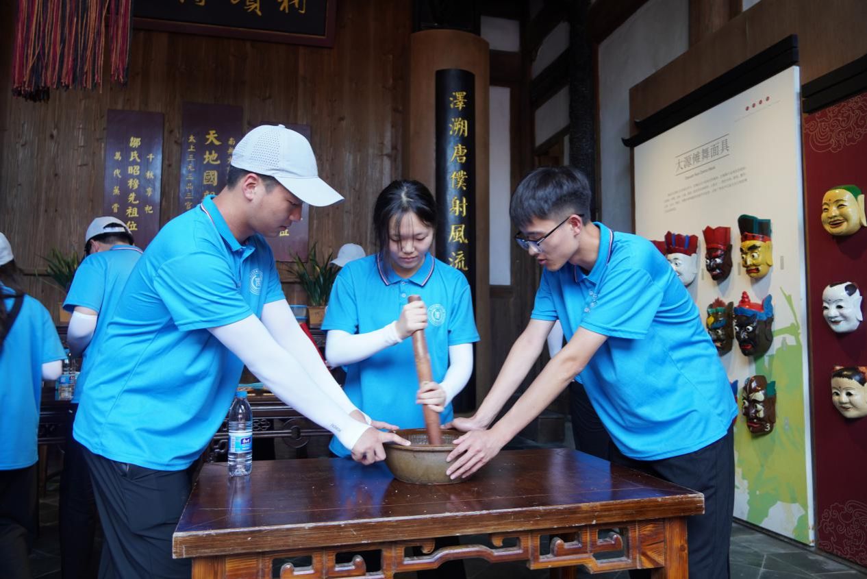泰宁客家擂茶距今有千余年历史,是泰宁最隆重的一种待客礼仪,也是保留下来的中国最古老的茶道之一,被誉为“中国茶文化的活化石”。实践团动手参与擂茶制作并品尝,了解泰宁擂茶的历史起源、配料、擂制方法、吃茶习俗、敬茶礼仪。通过非遗项目的观摩和体验,“学非遗、用非遗、秀非遗”,激发青年学生对非物质文化遗产的保护意识,在保护和继承中发展创新,努力让优秀的中华传统文化散发耀眼的光芒,为赓续中华文明、坚定文化自信、助力乡村文化振兴做出贡献。