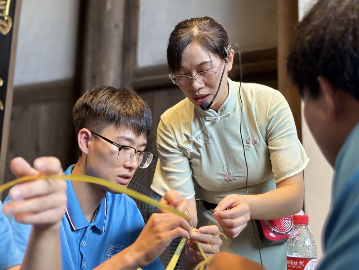 (实践团在非物质文化遗产博览院体验棕编技艺)