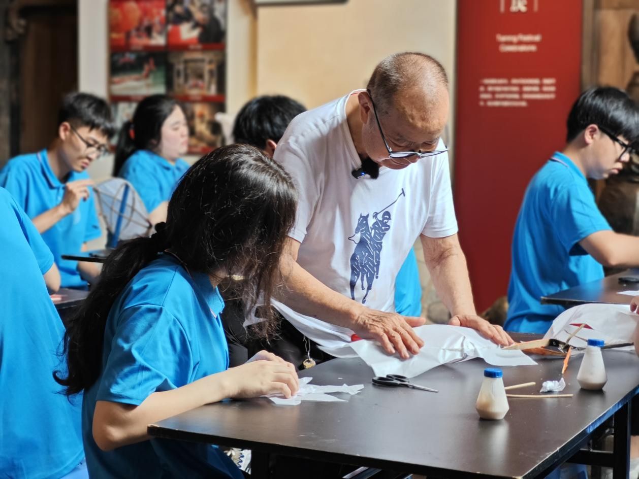 (市级非遗传承人涂声福指导实践团成员制作鱼子灯)