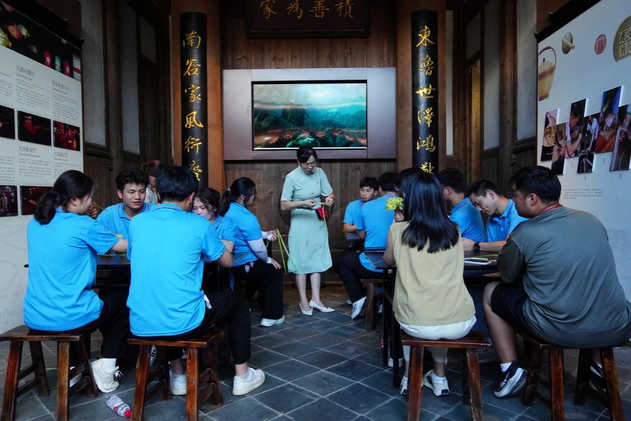 实践团在泰宁乡村非物质文化遗产博览院负责人的带领下参观了解泰宁县国家非物质文化遗产梅林戏,省级非物质文化遗产大源傩舞、大源赤膊灯、上青古乐,市级非物质文化遗产大田蚯蚓灯、茶东坑鱼子灯、大龙擂茶、竹编技艺、上青棕编技艺等,了解文化遗产的历史渊源和文化内涵,更好地理解和欣赏中国传统文化的博大精深,增强文化自信和文化认同感。随后,实践团逐一体验了市级非遗茶东坑鱼子灯、上青棕编技艺和大龙擂茶技艺。