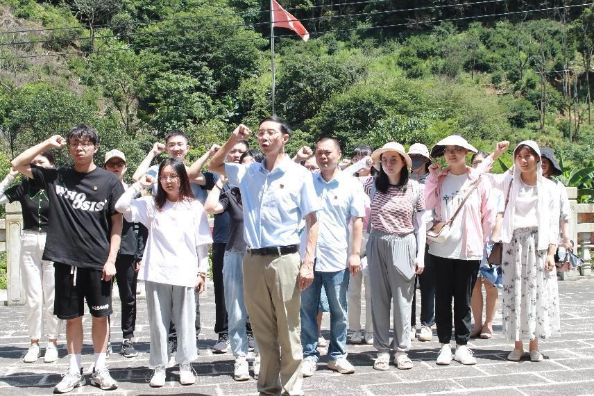 活动中,全体党员重走红军路,徒步行走在红军走过的小道上,沿途学习红色标语,重温红色历史事件。在纪念碑处听相关历史讲解后,农工学院党员向纪念碑敬献花篮、鲜花,并向先烈们鞠躬致敬。同时,全体党员在农工学院党总支书记余勋信带领下,面向党旗重温入党誓词。