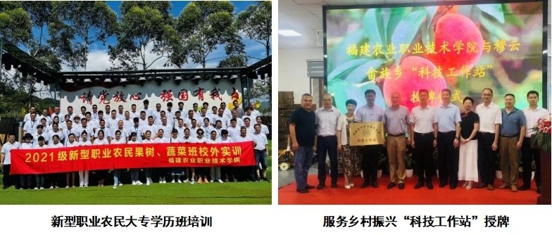 园艺园林学院教师积极投身社会服务,助力乡村振兴,向全省各乡镇派出省市级科技特派员69人次,省级科技特派团队9队,科技工作站5个;乡村振兴“百千万”工程服务乡镇7个,乡村60个,农户400余家;近五年在全省推广新品种10项、新技术5 项,获得专利、软著65件;近五年培训新农学员8331人,面向企业和行业培训4000人次以上。获得国家级教学成果奖二等奖--“中国特色新型职业农民培育“一模式四体系一机制”整体解决方案的创新与实践”(2019年)。