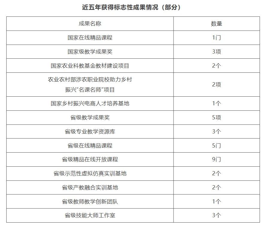 全方位推进教育教学综合改革与内涵建设,各领域标志性成果不断涌现,其中党建思政类成果国家级6项、省级57项;专业建设类成果国家级38项、省级152项;科研与社会服务类成果国家级16项、省级29项,并在多个领域实现历史性突破,引领全省农业职教高质量发展。