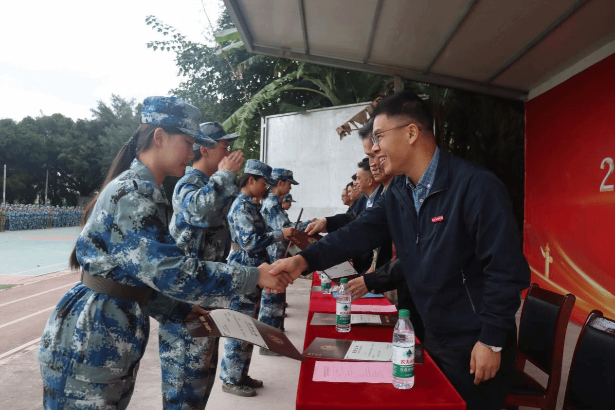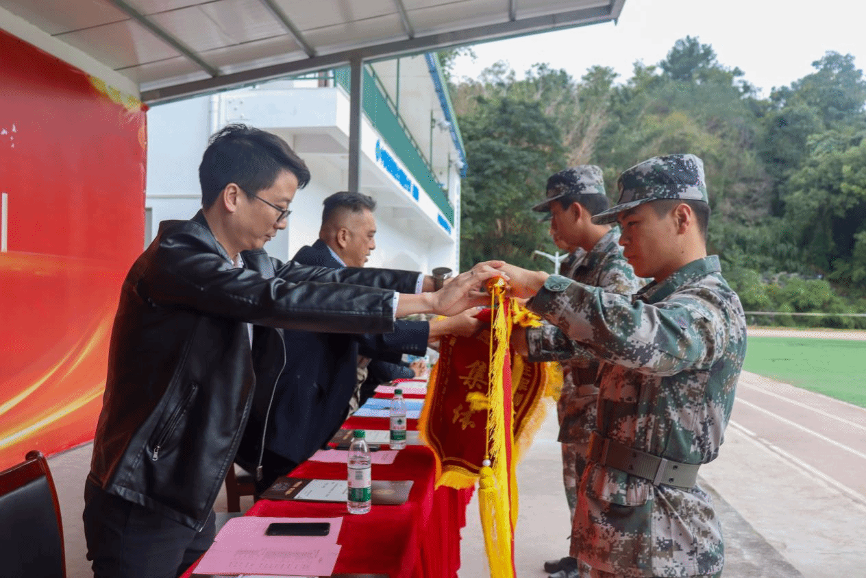 随后,学院副院长严挺文、承训指导员黎子健及教学点相关部门负责人给本次军训3个“先进集体”代表授予锦旗,为24名表现突出的军训“优秀标兵”个人颁发了荣誉证书。