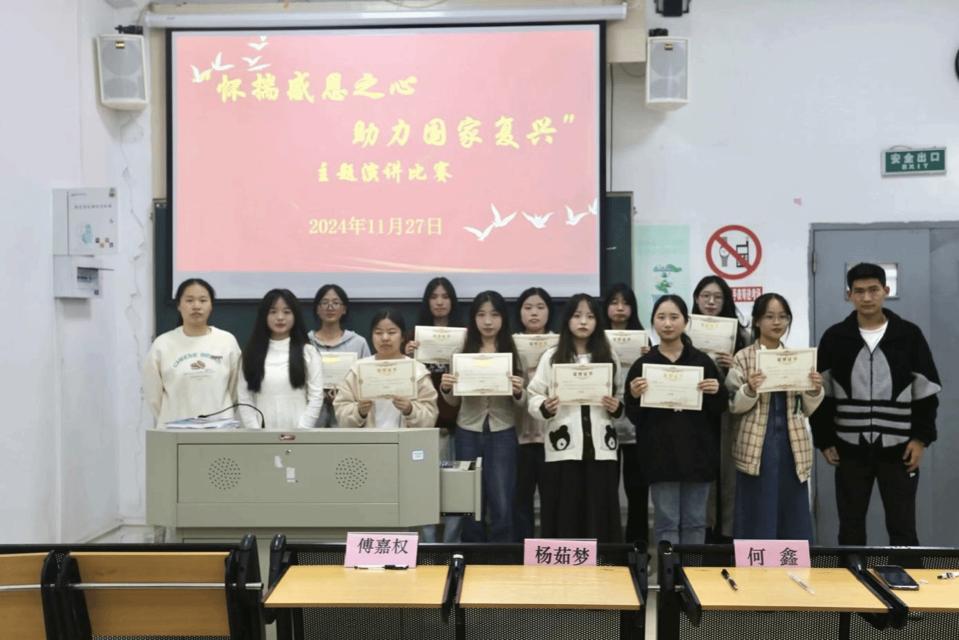 为弘扬中华民族传统美德,培养当代青年大学生知恩、感恩、报恩的良好品德修养,2024年11月26日至11月27日,经济管理学院分别在首山校区和软件园教学点举办以“怀揣感恩之心,助力国家复兴”为主题的演讲比赛,经济管理学院部分辅导员以及软件学院辅导员傅嘉权担任此次大赛评委。