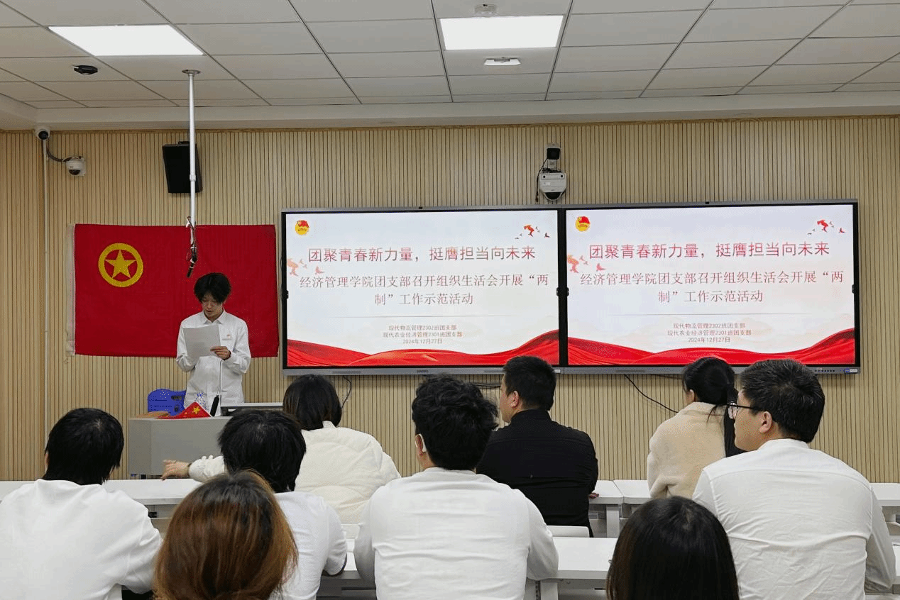 根据共青团中央《中国共产主义青年团基层组织“三会两制一课”实施细则》等相关要求,结合实际,经济管理学院团委积极响应上级团组织号召,于2024年12月27日召开了“团聚青春新力量,挺膺担当向未来”为主题的组织生活会,开展“两制”工作示范活动。