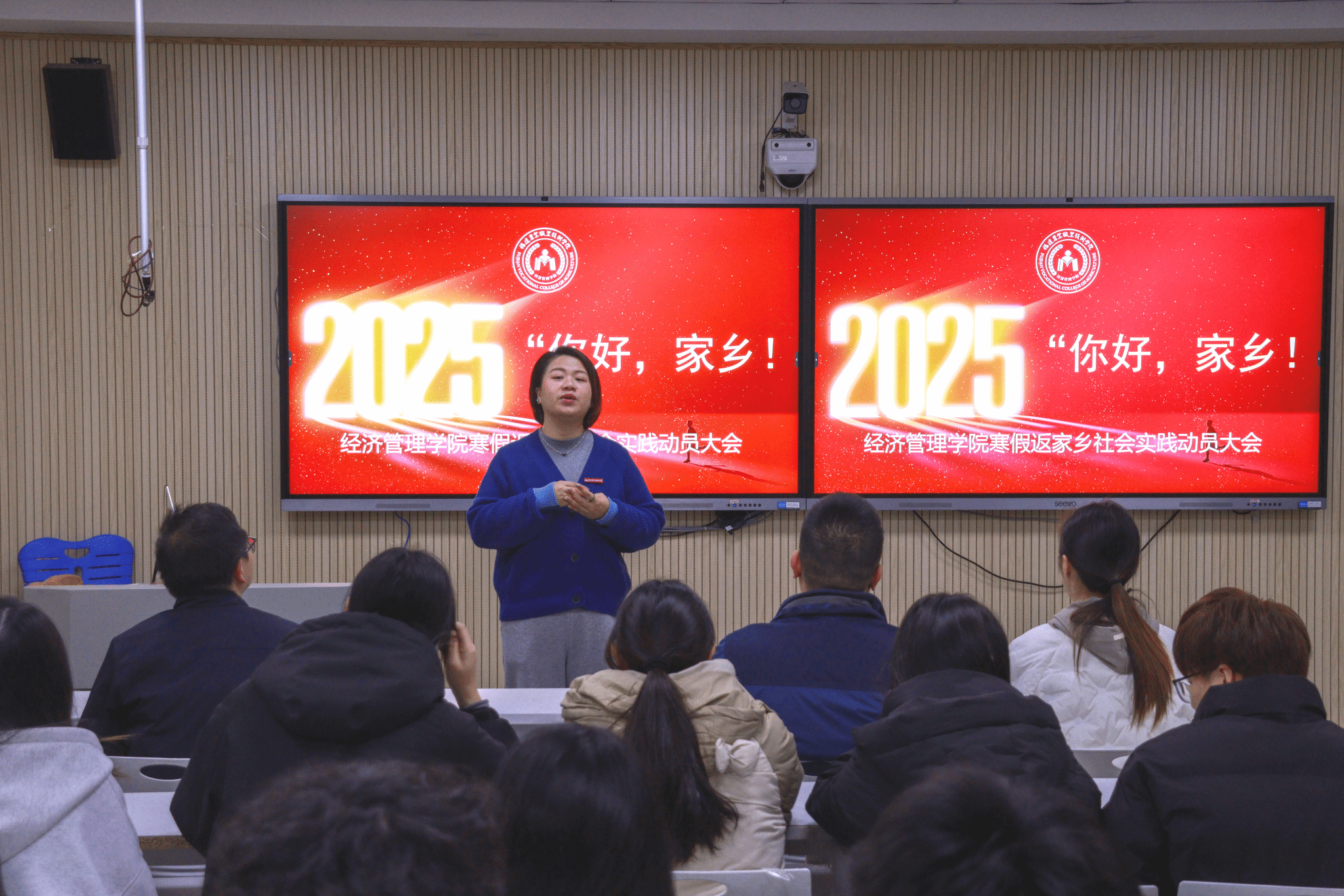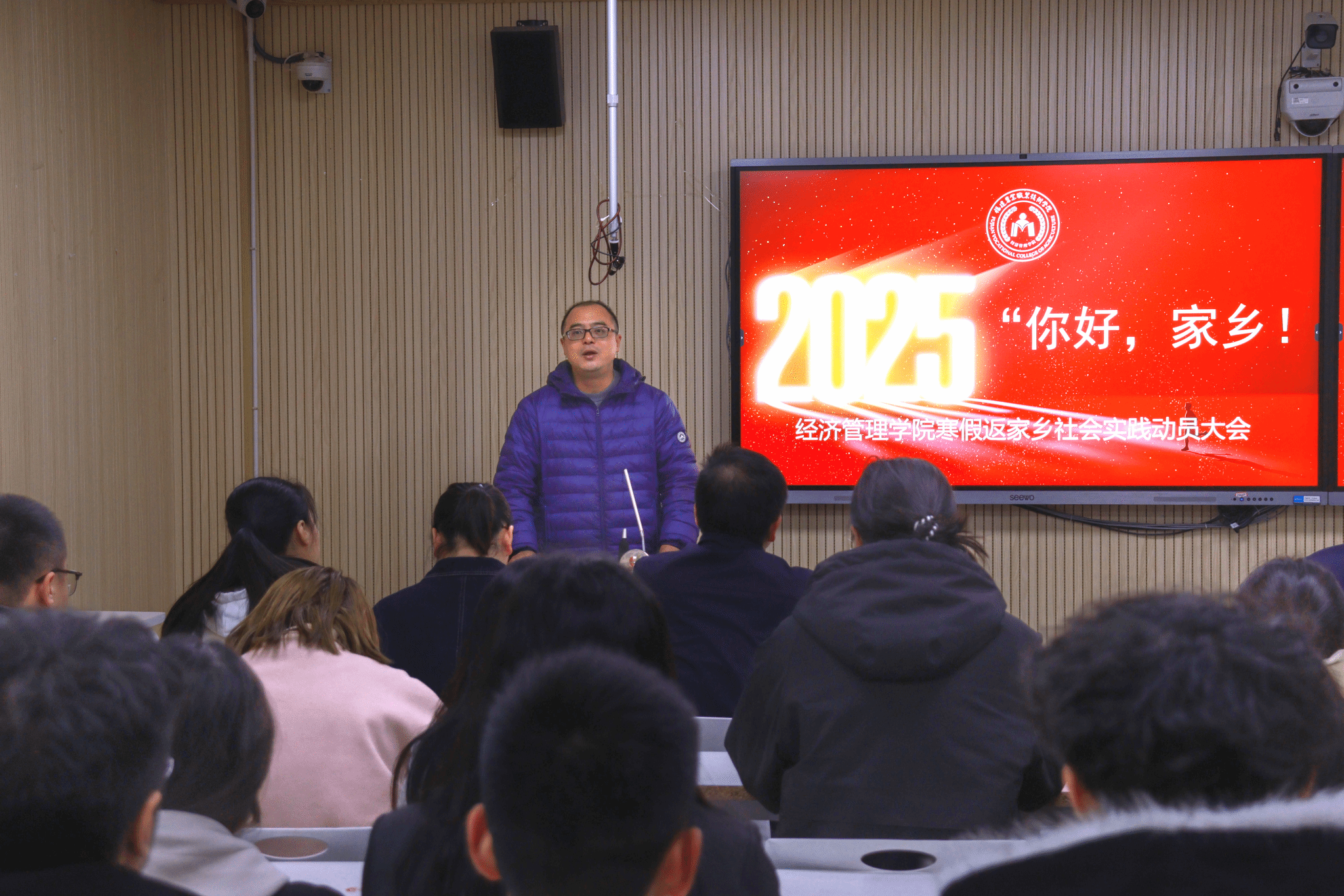 为深入学习贯彻党的二十届三中全会精神,切实领会习近平总书记关于青年工作的重要思想,进一步动员引领青年学生在投身基层建设、服务家乡发展中坚定信念、增长本领、作出贡献。2025年1月7日,经济管理学院分别在首山校区和软件园教学点开展了“你好,家乡!”经济管理学院2025年寒假大学生返家乡社会实践动员大会,经济管理学院专职副书记彭阔东、辅导员代表、各班级班委参加了动员大会。