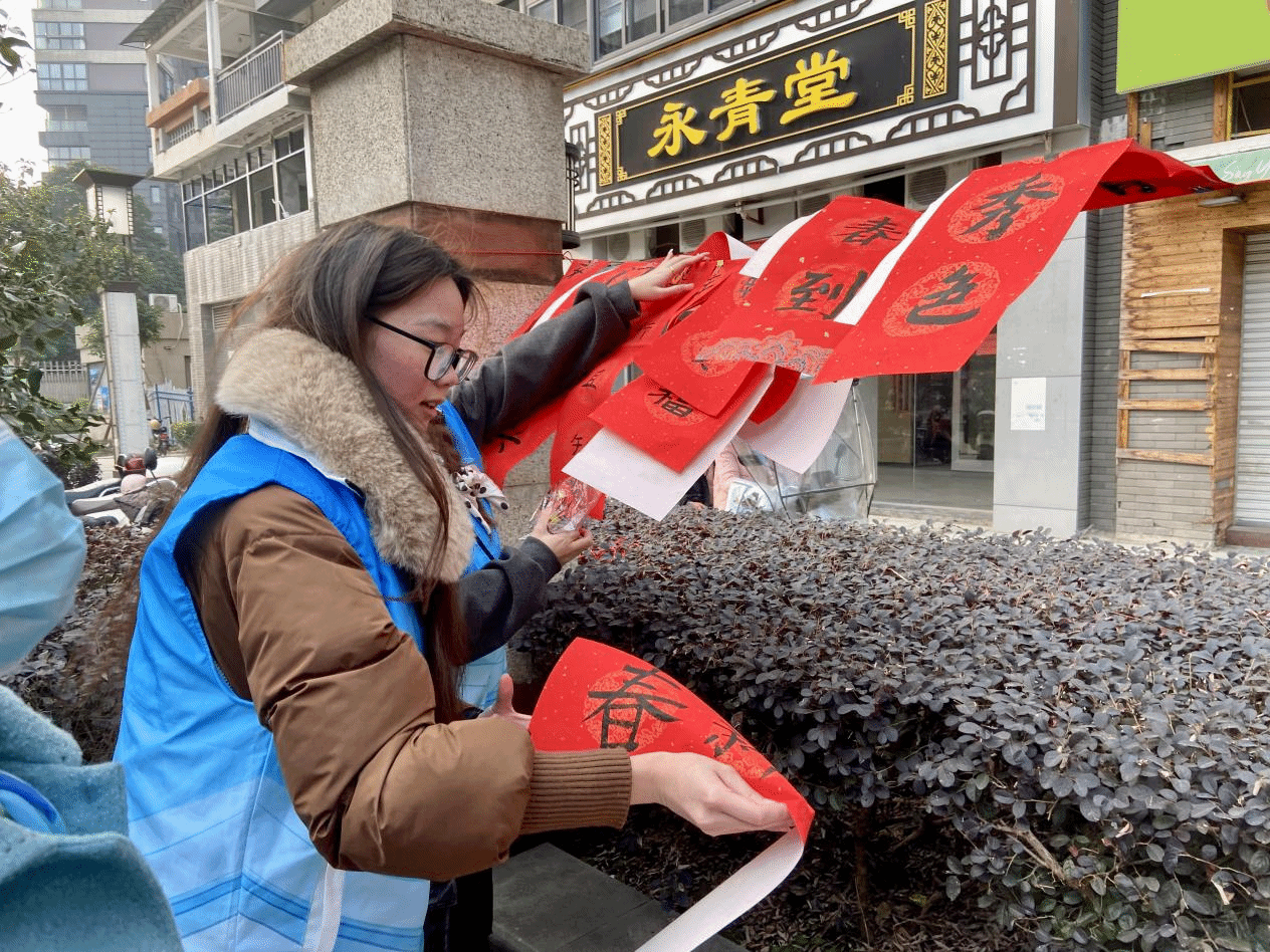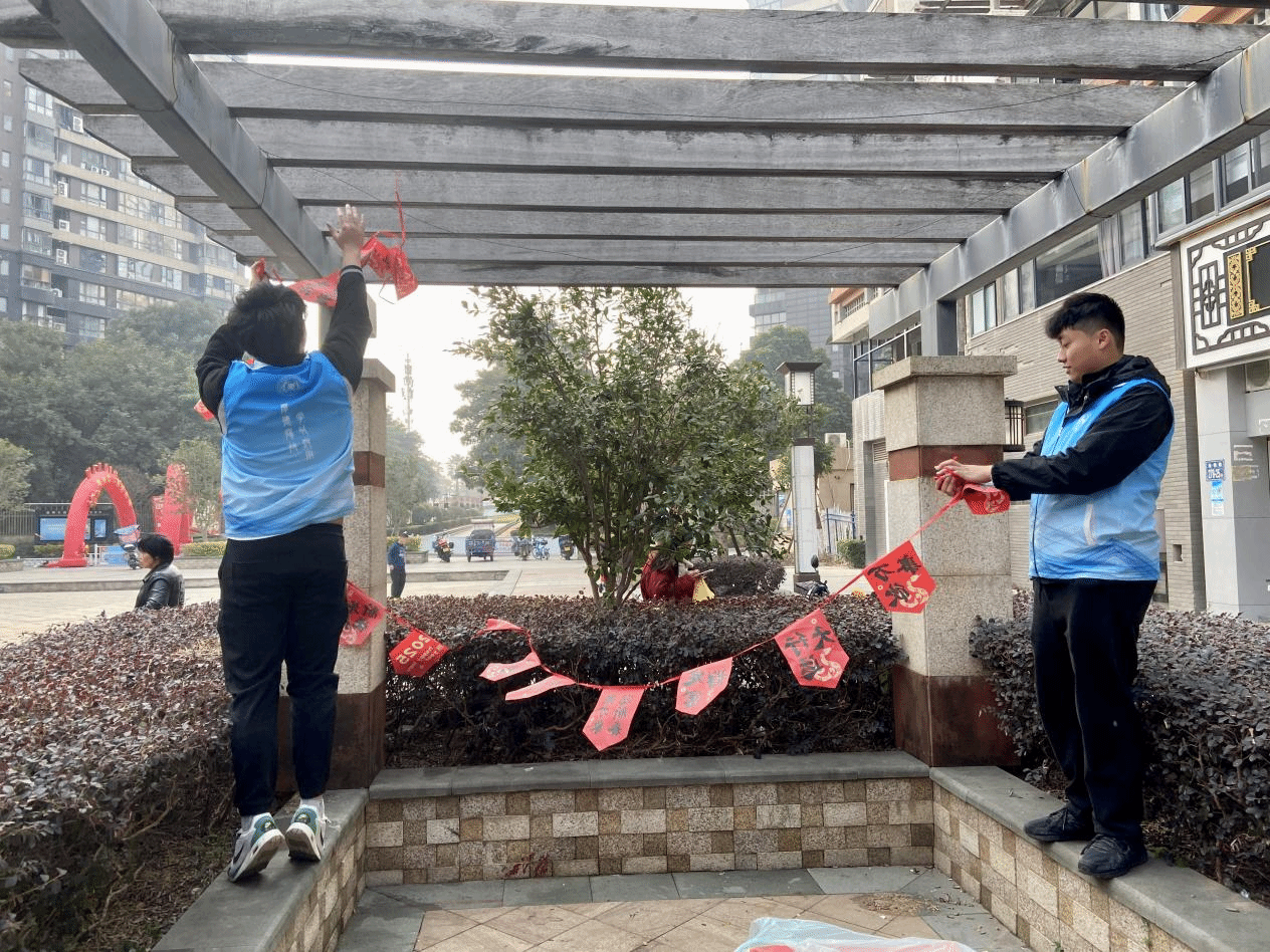 新春佳节将至,许多开启寒假生活的大学生志愿者们走进家乡社区,积极参与社区日常工作和志愿服务活动,以他们的实际行动,为社区注入了新的活力与温暖。1月15日,经济管理学院“福榕志愿实践队”携手中天社区开展迎春志愿服务活动,为社区营造欢乐祥和的春节氛围。