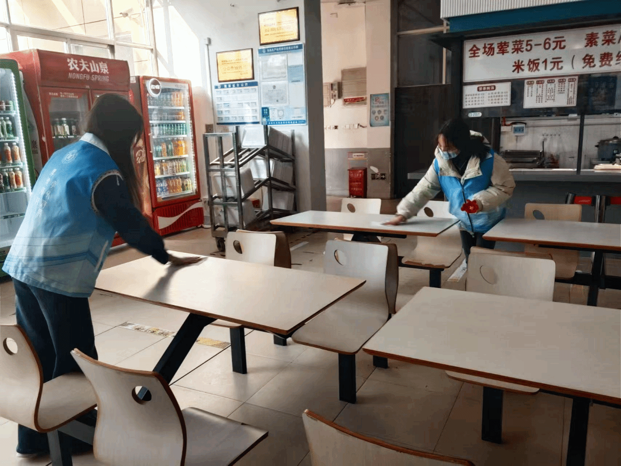 随后,志愿者们又转战食堂开展清理卫生的志愿服务活动,并把这些满载着爱与祝福的手工花束送到校园里的保安、保洁、食堂员工等劳动者手中。看着整洁有序的校园环境和收到的花朵,劳动者们的脸上洋溢着惊喜与感动的笑容。