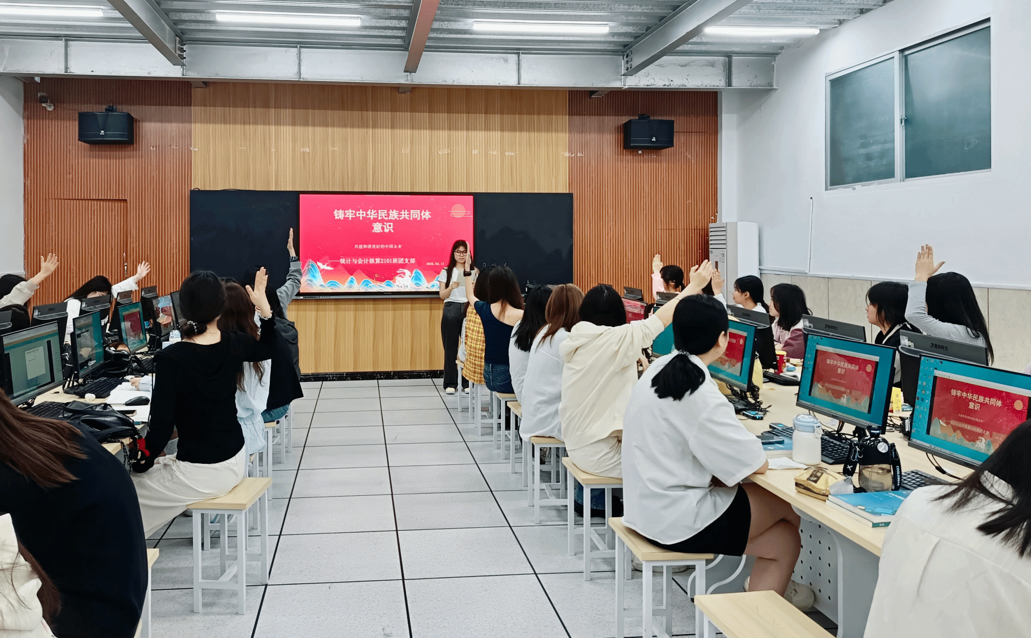 统计与会计核算(五专)2101班团支部组织了一场“民族团结”知识竞赛团日活动。通过民族知识抢答游戏,让青年团员们直观感受并学习了各民族文化特色。最后,围绕“作为新时代青年应该如何维护民族团结”展开热烈讨论,大家一致表示,要将民族团结理念融入日常生活,以实际行动践行中华民族共同体意识。