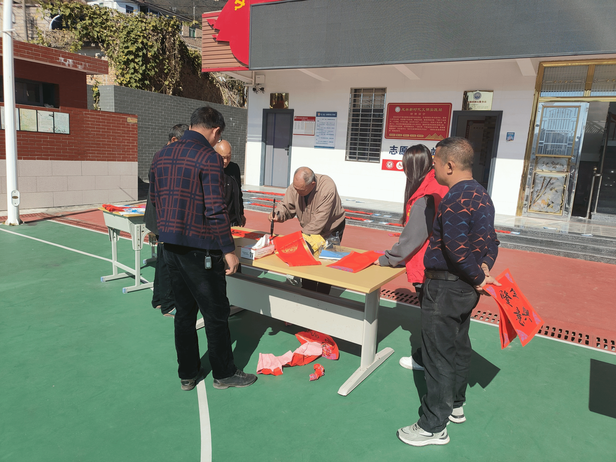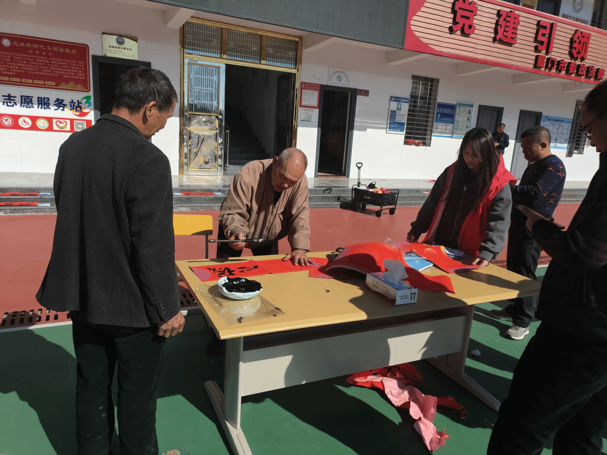 实践感悟:在2025年寒假期间,我返回家乡厦门市同安区莲花镇尾林村参与社区实践活动。实践期间,村委会正在筹备迎春工作,邀请到了两位备受尊敬的书法家,现场挥毫泼墨,书写春联,为村民送上新春祝福。此次实践让我深刻感受到传统文化在社区中的凝聚力,也提升了我的组织协调能力。