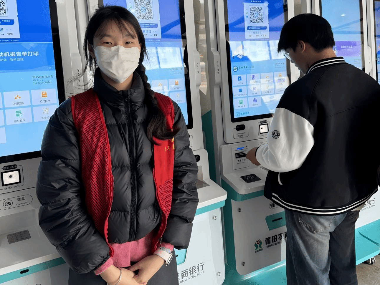 实践感悟:在2025年寒假返家乡社会实践期间,我参加了莆田市第一医院志愿服务活动,服务岗位是在自助机前帮助患者线上挂号、取号、缴费等,让患者来医院就诊更方便快捷。这次实践经历,提升了我办事效率和有效沟通的能力,让我更加自信地面对未来的学习和工作挑战,也让我更加坚定要学习医护人员的辛勤劳动和无私奉献的精神。