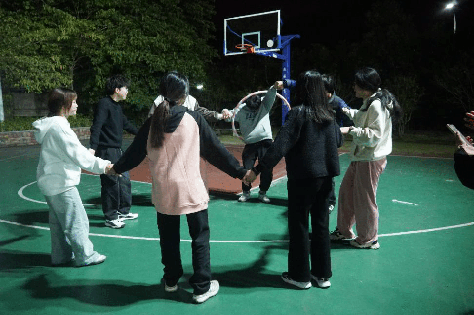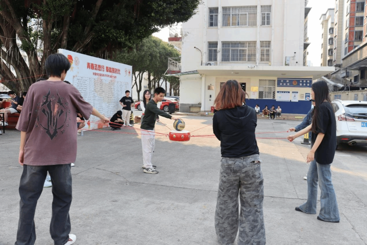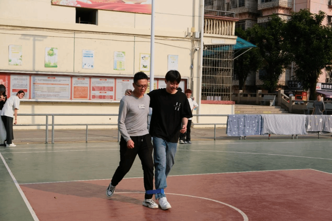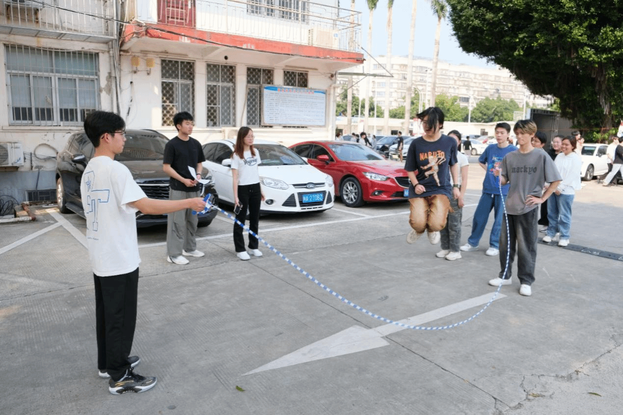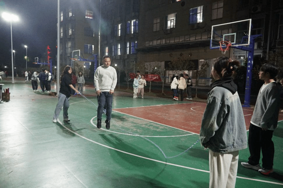 活动现场,学生们在欢声笑语中挥洒汗水,每个项目都考验着团队的默契与协作。“两人三足接力”项目,两位搭档需步调一致,默契配合,才能快速前进;“同心鼓”则要求队员们齐心协力,保持节奏,让鼓上的球不断弹跳;师生们在“八字跳绳”中在灵活穿梭,展现了良好的协调性;而“一圈到底”则考验同学们身体柔韧性,以及团队的沟通与策略。每个项目结束后,现场掌声雷动,欢呼声此起彼伏。经过激烈角逐,最终评选出优胜队伍,同学们不仅收获了荣誉,更在运动中增进了彼此的友谊。