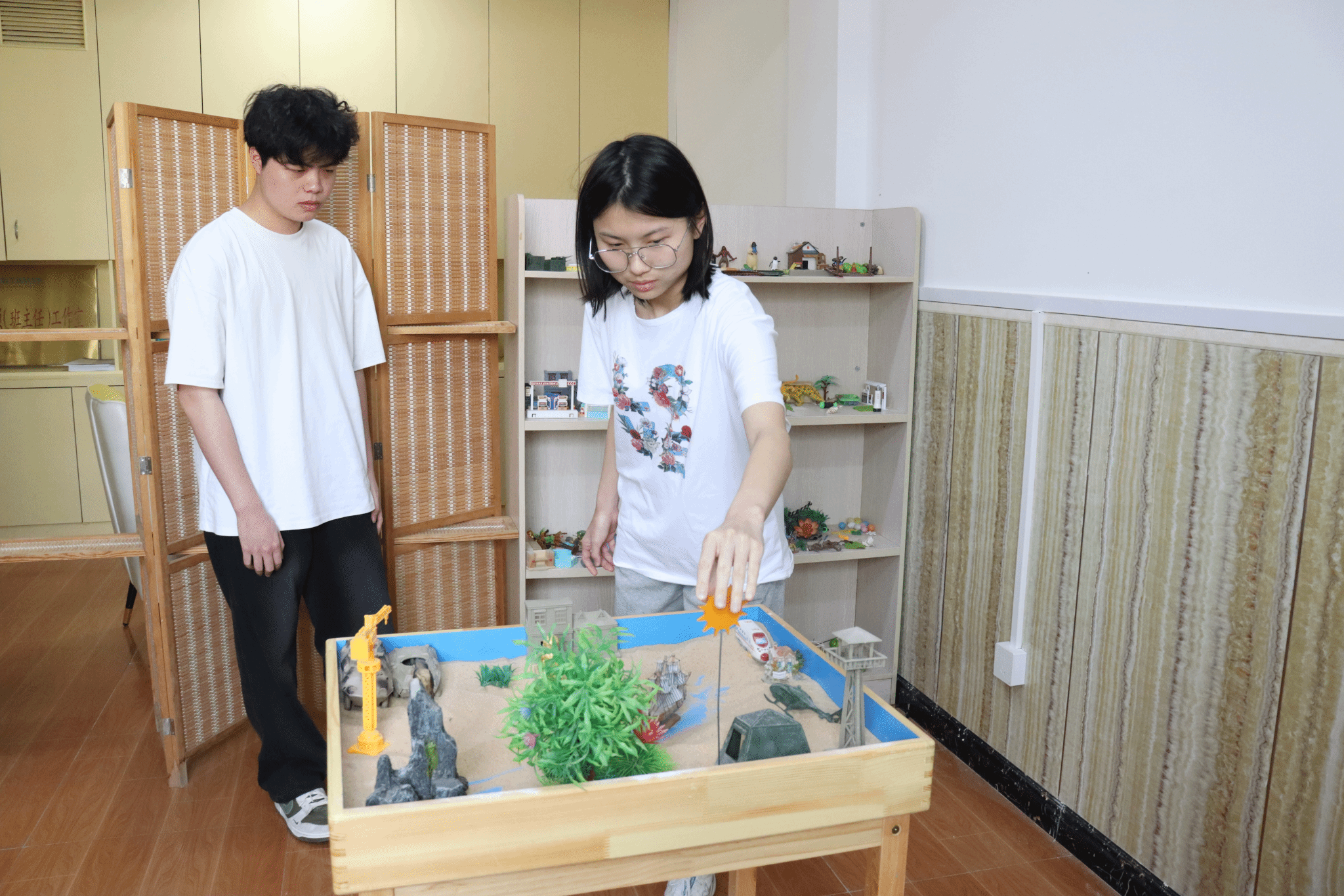 同学们进行沙盘游戏