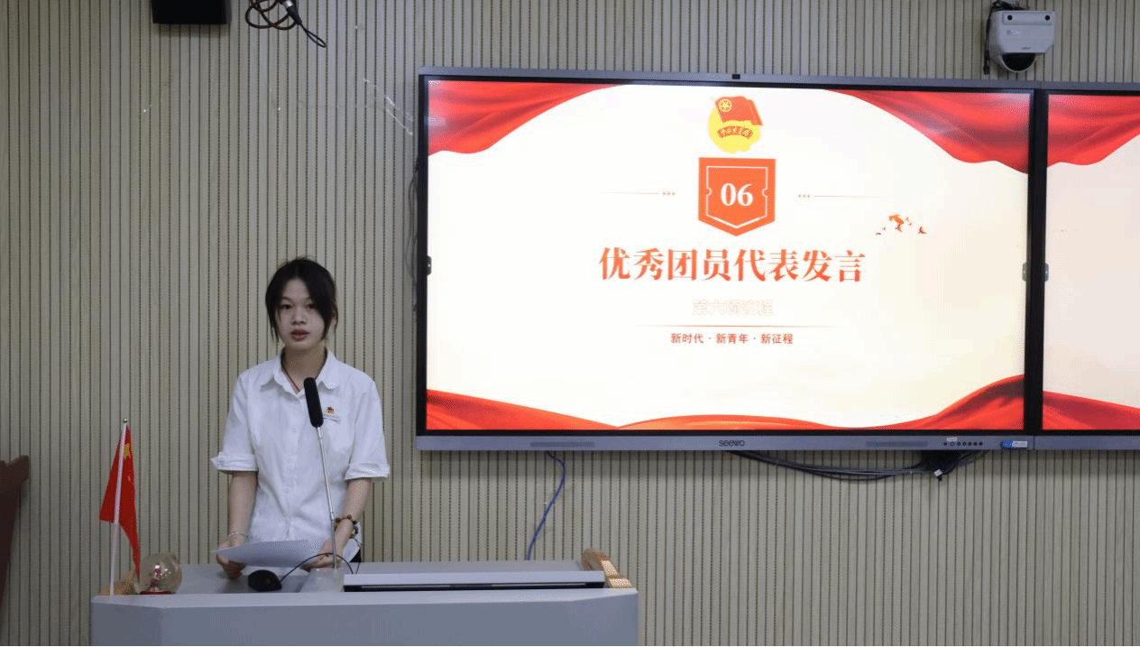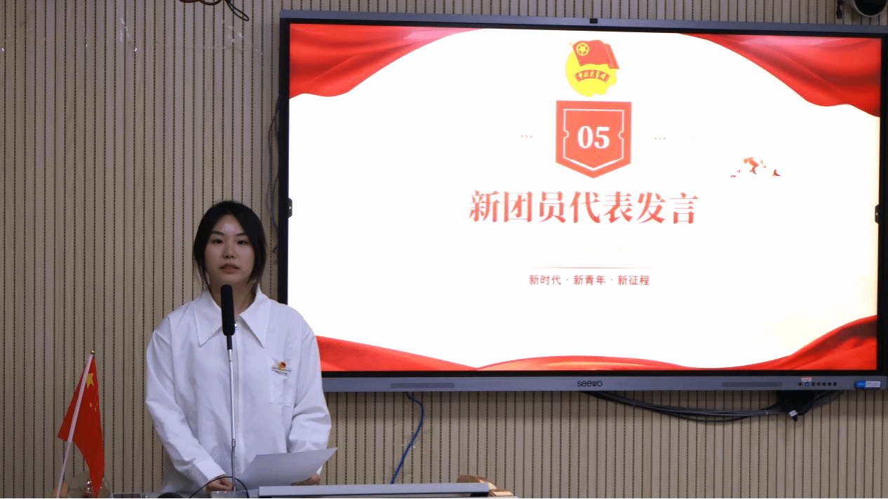 宣誓完毕,市场营销2401班欧希怡代表新团员发言,她表示,入团既是荣誉更是责任,她号召全体新团员以团徽为激励,牢记团员身份,在学习中不断进步、在实践中提升能力,争做有理想、敢担当的新时代青年,为团组织的发展贡献自己的青春力量。