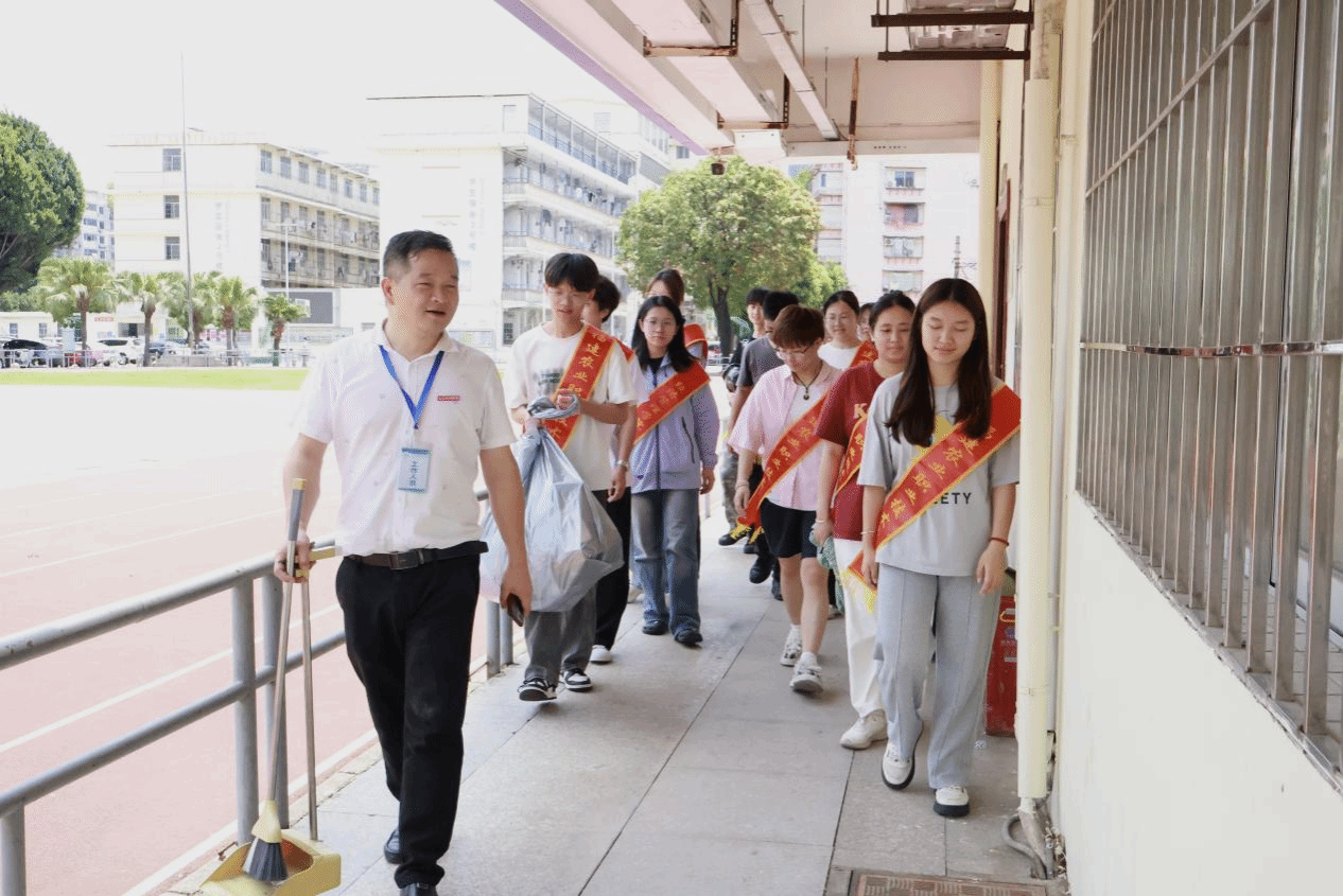 与此同时,惠农一站式学生社区的卫生清扫工作也有条不紊开展。党员们分工负责公共走廊、党团之家、办事大厅等公共区域的全面清洁工作,有的弯腰捡拾地面杂物,有的细致清扫地面垃圾,有的精心整理摆放社区办公用品,忙碌的身影成为校园里一道亮丽的风景线。
