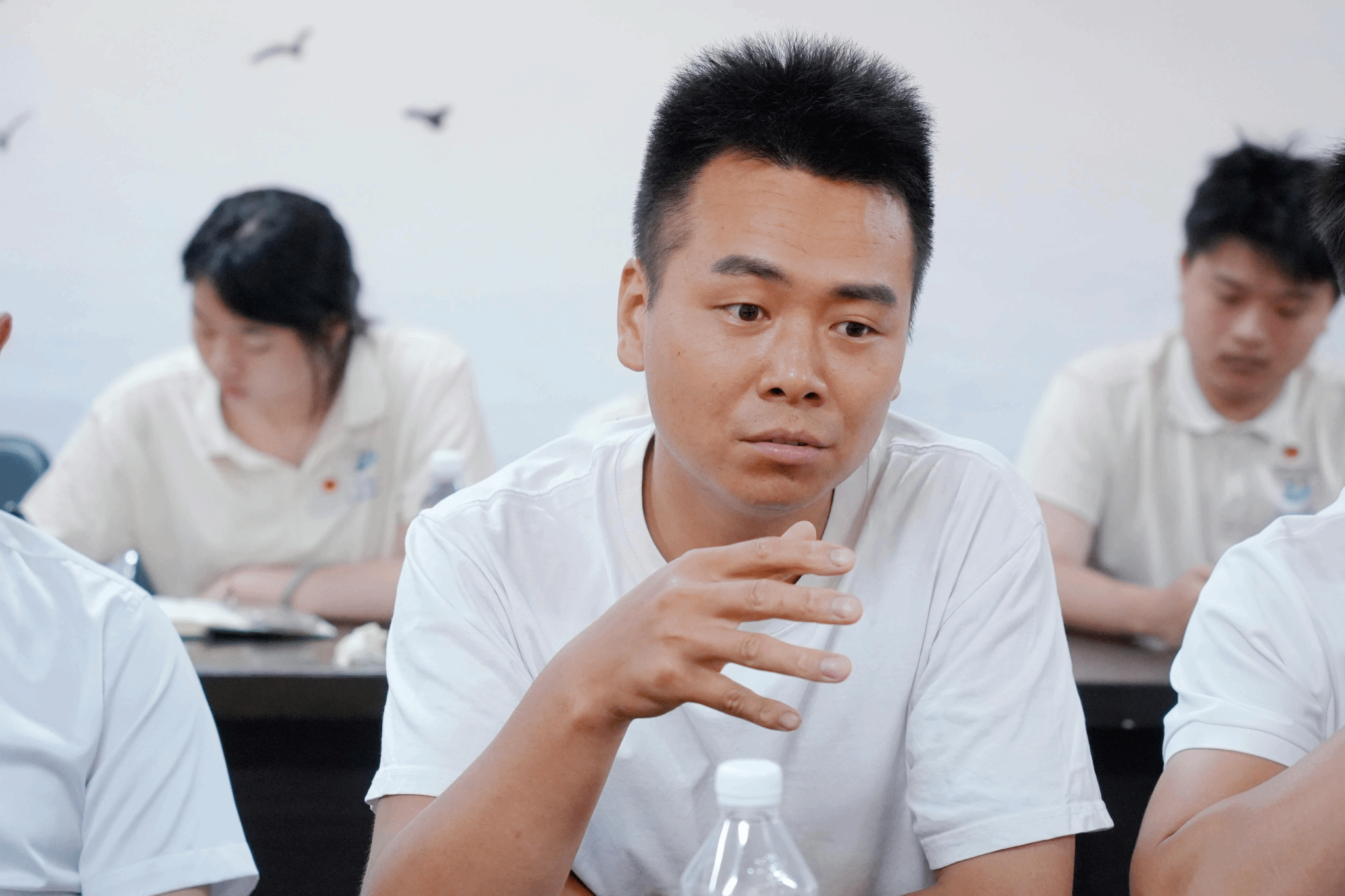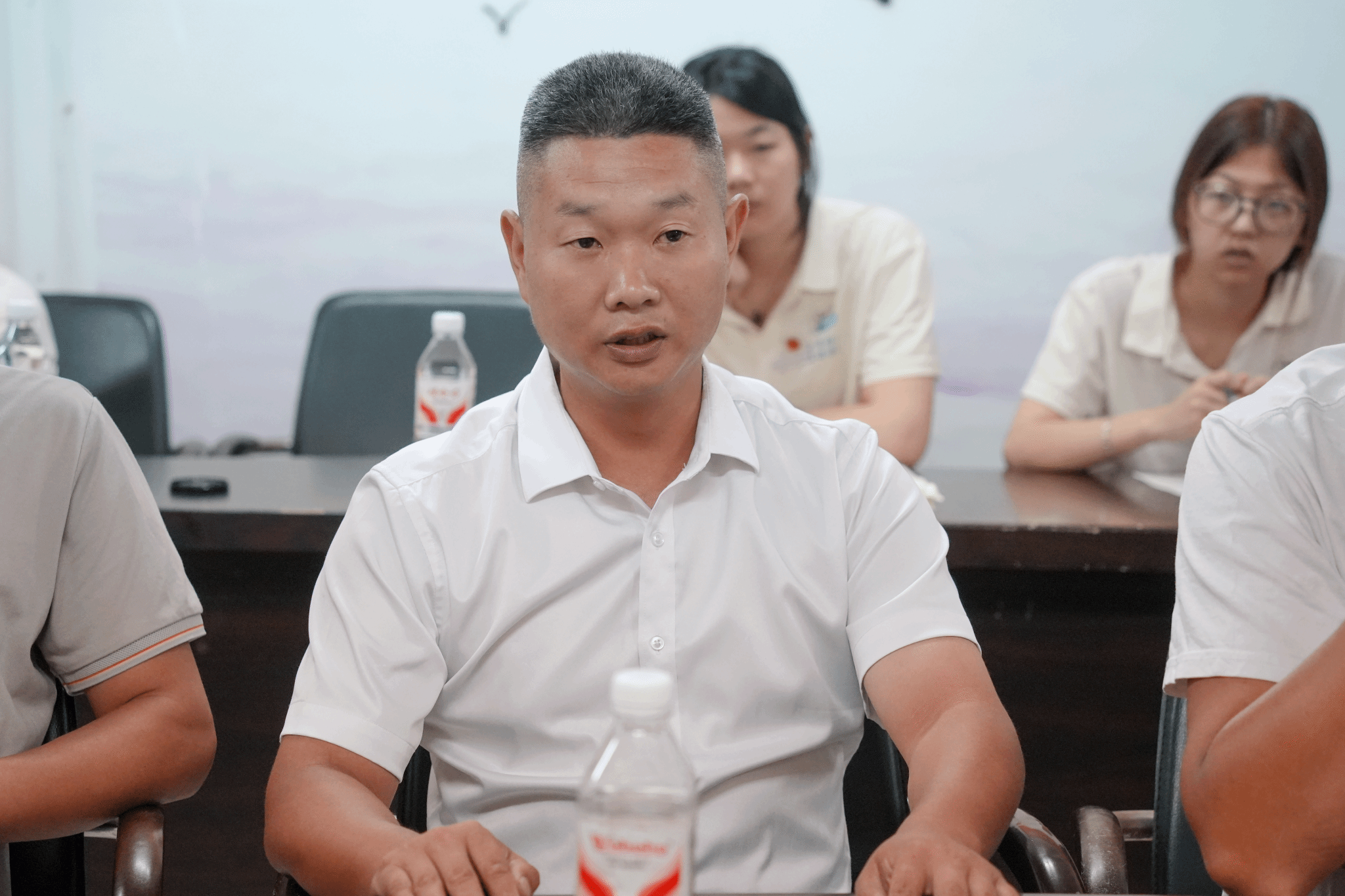 会议由范金旺老师主持,他逐一介绍了莅临现场的优秀青年企业家代表与实践团指导老师们,让实践团成员对这些深耕乡村振兴领域的“创业引路人”有了初步认识,为后续深度互动交流营造了轻松融洽的良好氛围。