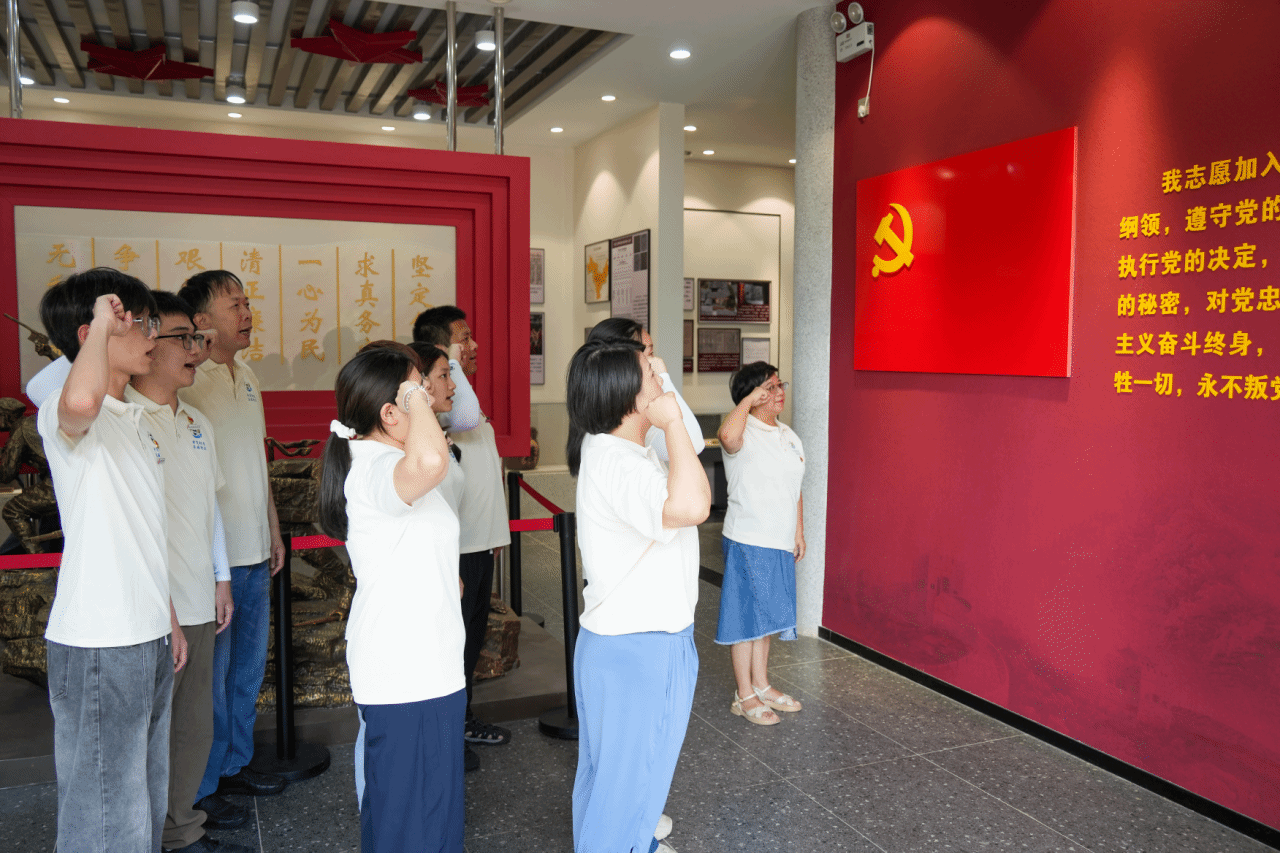实践首站,队员们走进明溪县革命纪念馆。通过纪念馆内展陈的珍贵文物资料和党史照片,队员们深入了解了明溪作为中央苏区早期21县之一的红色历史,以及毛泽东主席两次到访的革命足迹,深刻感悟到当地百姓的革命情怀与苏区精神。为了让红色教育在沉浸式体验中入脑入心,马克思主义学院王英教授带领全体党员面向党旗庄严宣誓,以铿锵誓言淬炼初心使命。