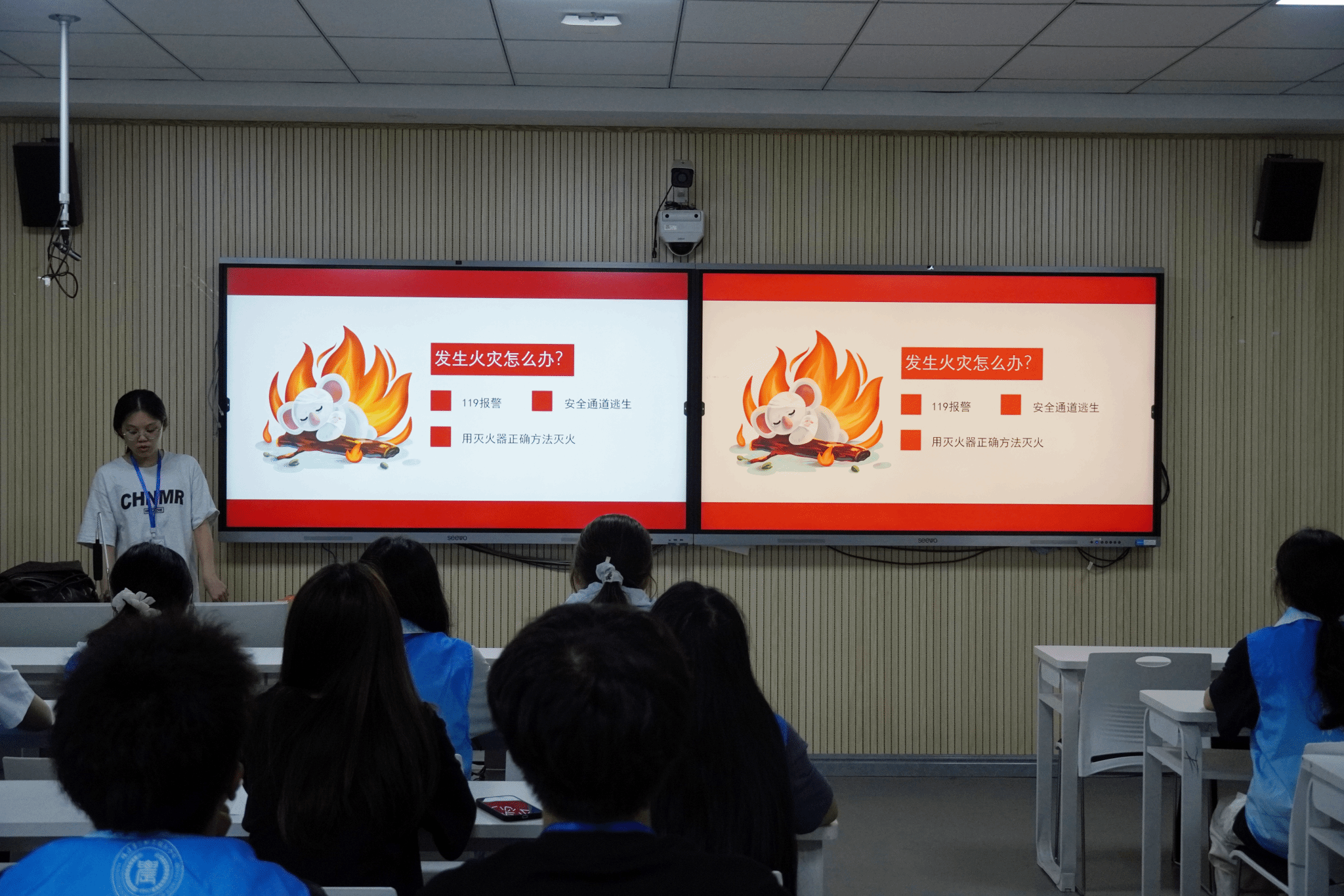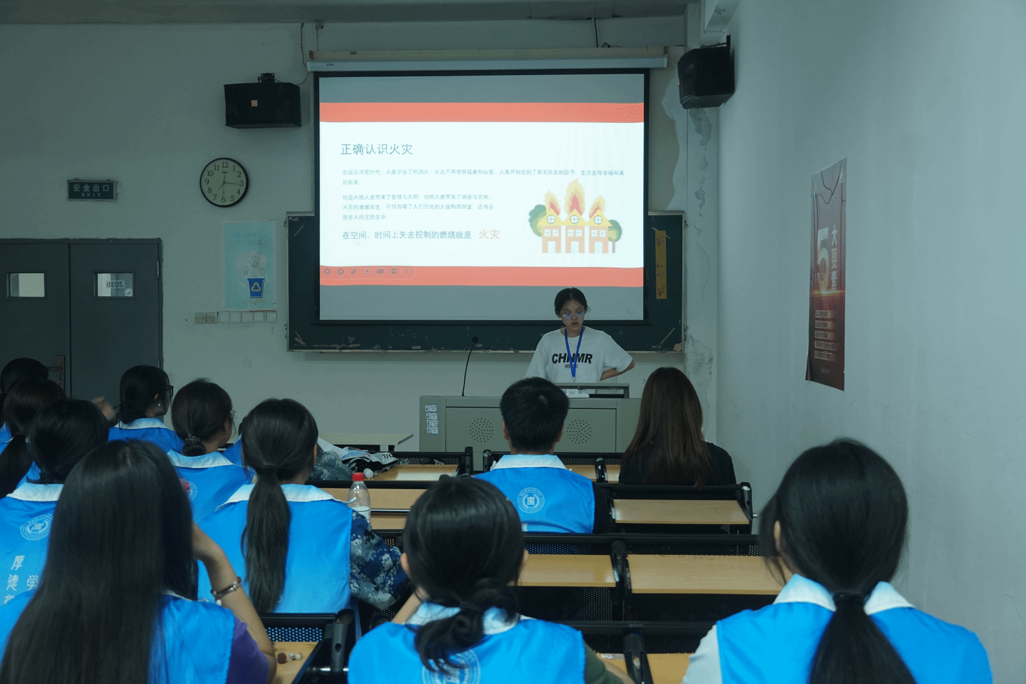 活动当天,青榕蓝盾宣讲人黄裕容同学通过播放火灾案例,向在场志愿者普及防火常识、初期火灾应急处置方法等,同时强调了紧急情况下如何使用校内消防设施,帮助大家掌握消防安全知识,提升应急处置能力。