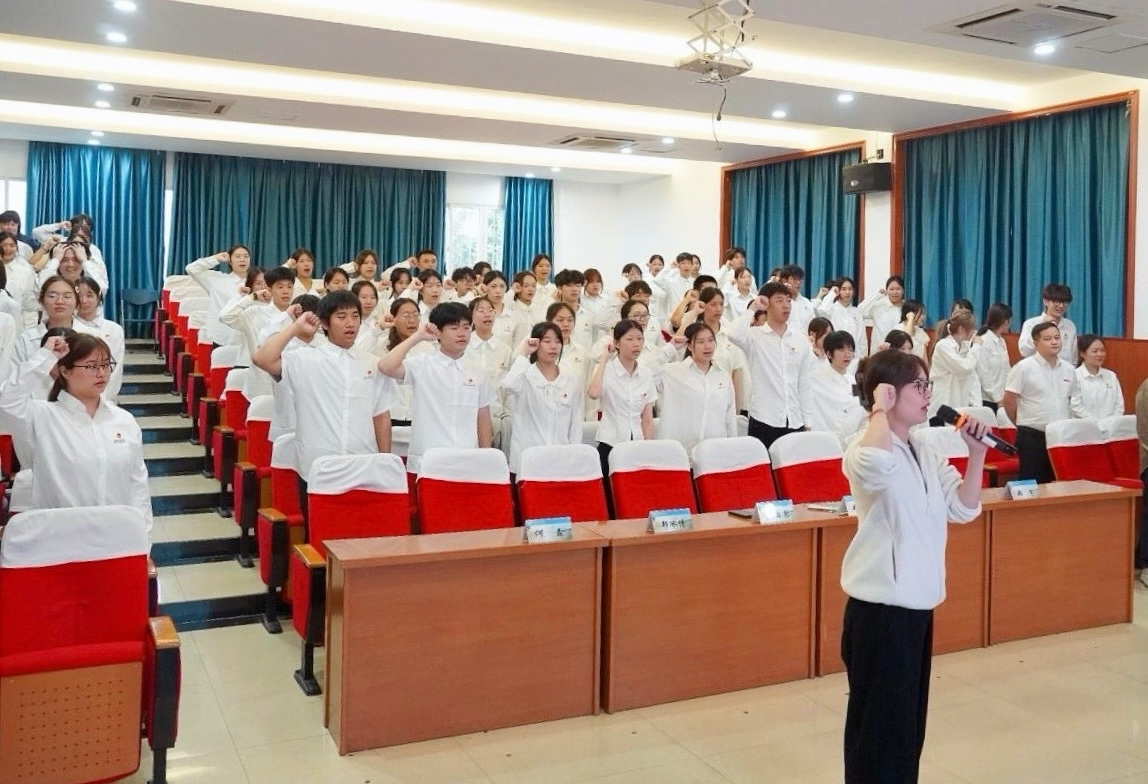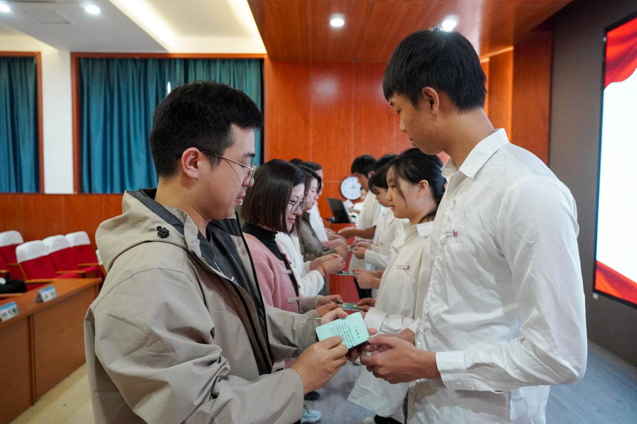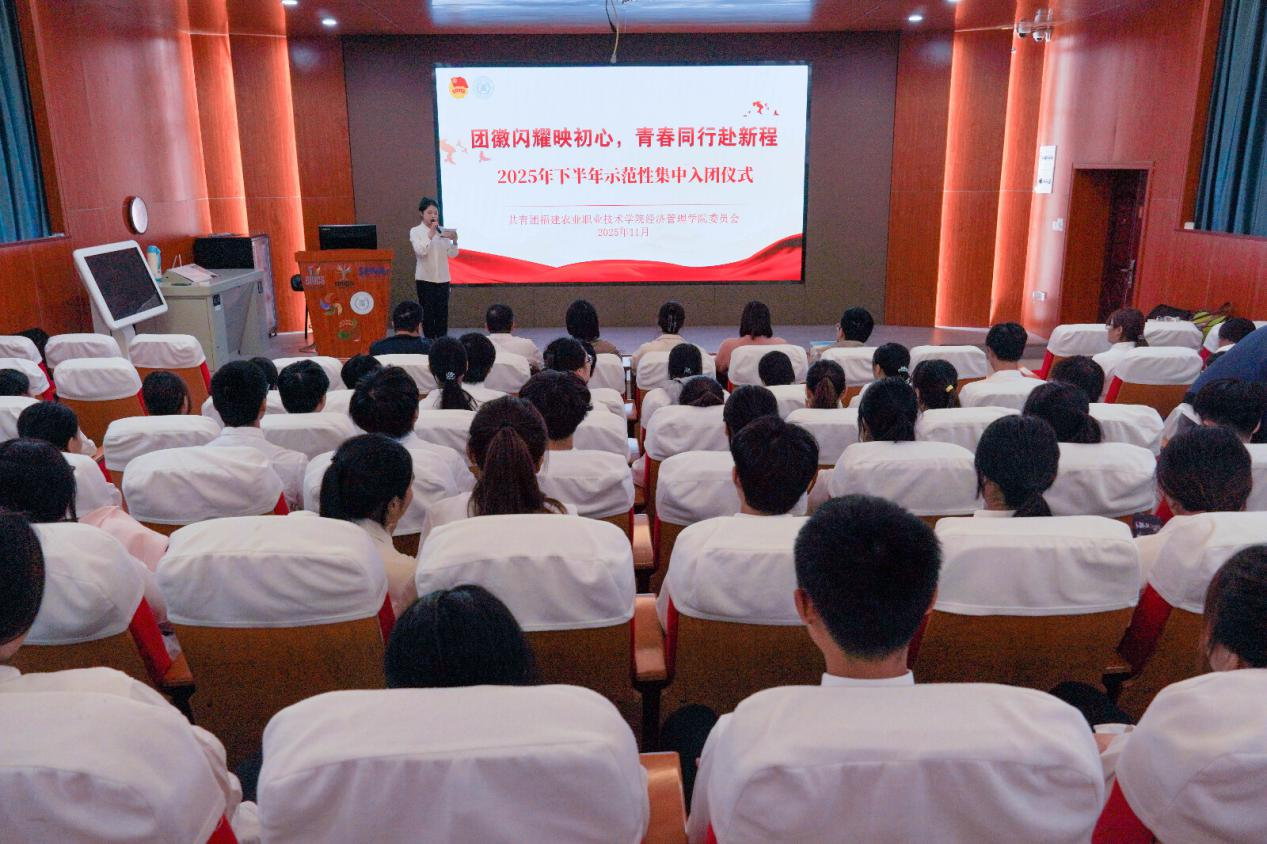 为传承红色基因,凝聚青春力量,进一步增强团组织的凝聚力和活力,强化青年学生的理想信念与责任担当,经济管理学院团委于2025年11月13日举行2025年下半年示范性集中入团仪式。经济管理学院团委书记郑琳、学生第一党支部书记杨宏强,互联网金融学院团总支书记谢德惠,辅导员代表、优秀团员代表以及104位新团员出席本次入团仪式。