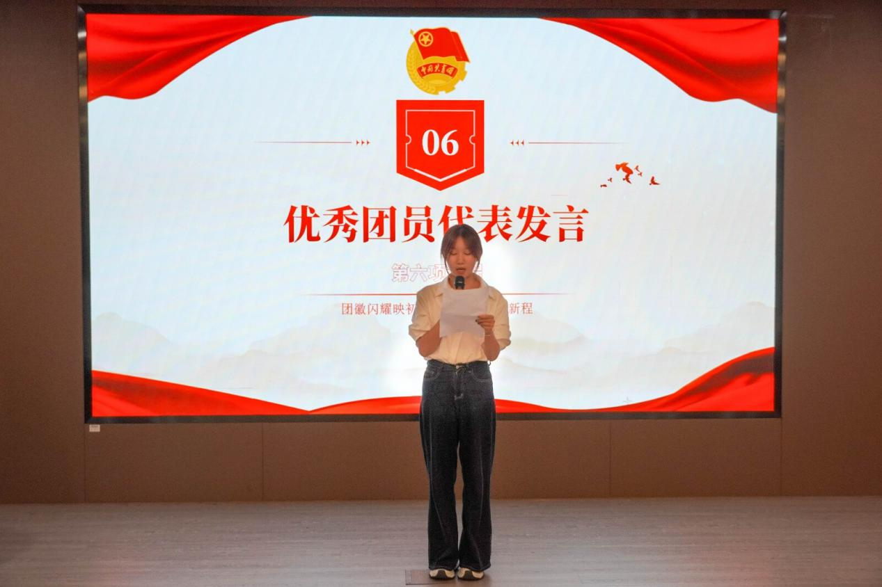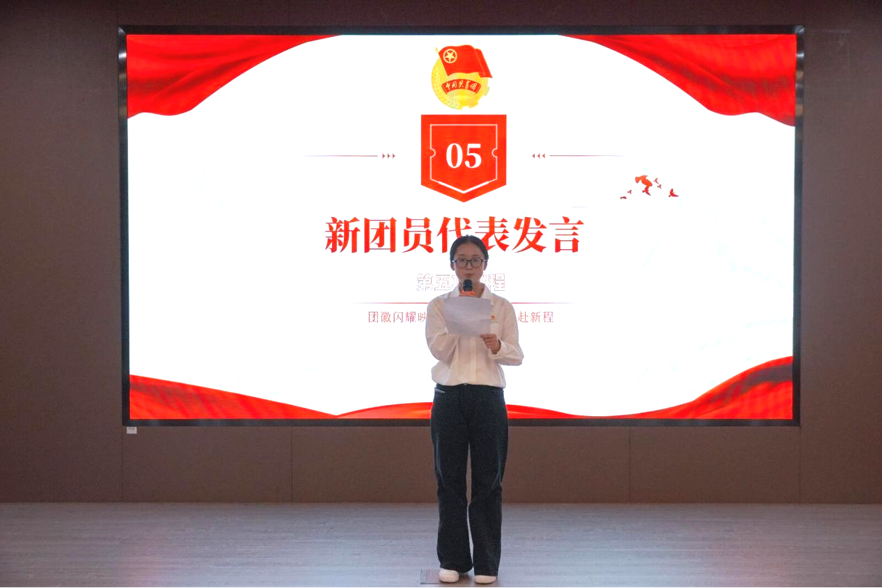 宣誓完毕,现代物流管理2402班张子晨代表新团员发言,她回顾从提交申请到以团员标准践行于学习、实践、生活的成长历程,承诺以团员身份为奋斗起点,坚定信念做追梦者、锤炼本领做实干者、担当奉献做奋进者,用行动践行青春誓言。