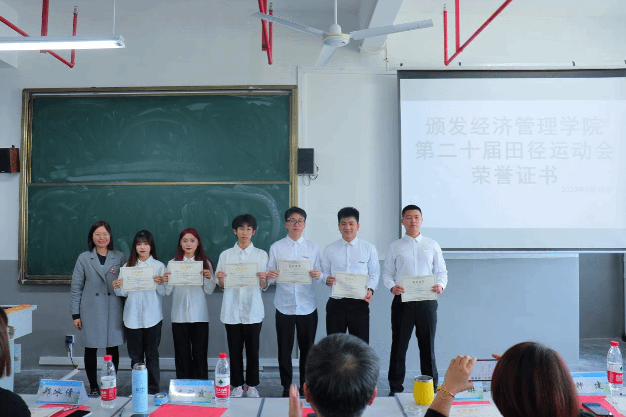2023年3月15日上午,经济管理学院在禾下501教室召开第二十届田径运动会表彰大会。经济管理学院党总支书记杨承亮、学工办负责人郑琳、学生党支部书记吴彩霞、学工部心理中心钟建老师以及经济管理学院辅导员老师出席本次大会。本次会议由林志美同学主持。