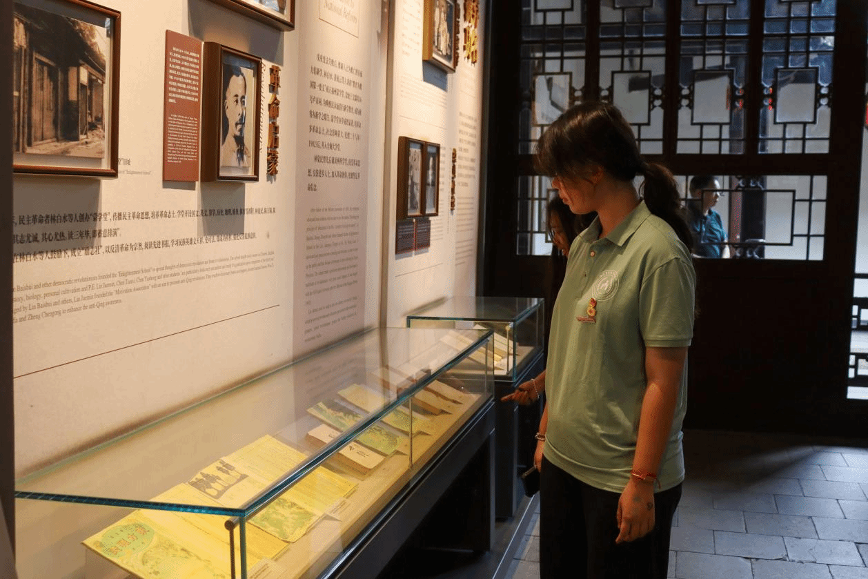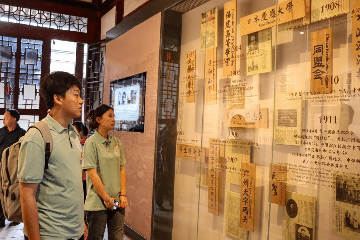 一座宅院,两个牌匾,同时纪念两位名人,也是福州辛亥革命纪念馆。走进宅院主座,左右厢房有林觉民生平事迹的介绍,师生一行驻足重温了黄花岗烈士林觉民《与妻书》的感人故事。团员学生通过参观学习,深入了解了林觉民先烈毅然投身革命、舍身就义的英勇事迹,深刻感受了以林觉民烈士为代表的革命先烈舍生取义的高尚胸襟和“为天下人谋永福”的家国情怀。