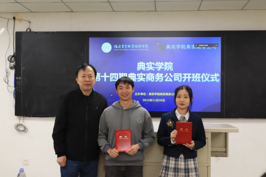 11月30日下午,典实学院在首山校区教学楼204教室和院部第五食堂402教室同步举行典实学院第十四期开班暨典实商务公司管理层聘任仪式。经济管理学院副院长马凤棋、创新创业与校企合作办主任王英、李非老师、全勇老师以及典实学院第14期全体成员参加了本次仪式。