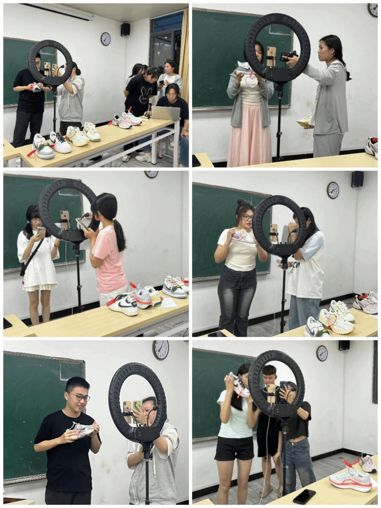 在这场别开生面的决赛中,以抖音直播间为竞技场,各队选手依托企业提供的直播账号与品牌鞋,依据抽签顺序,在限定的15分钟内施展浑身解数,将产品故事与品牌价值巧妙融合,化身为直播间的闪耀明星。现场气氛热烈,叫卖声、欢笑声交织成一曲青春与梦想的交响乐,展现了当代学子对新零售业态的敏锐洞察与独到见解。