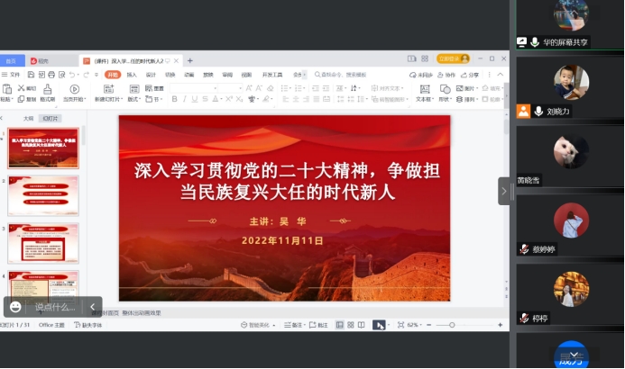 11月11日下午,校党委委员、副校长吴华为经济管理学院全体党员教师及部分学生党员代表宣讲二十大精神。会议通过线上的方式进行。