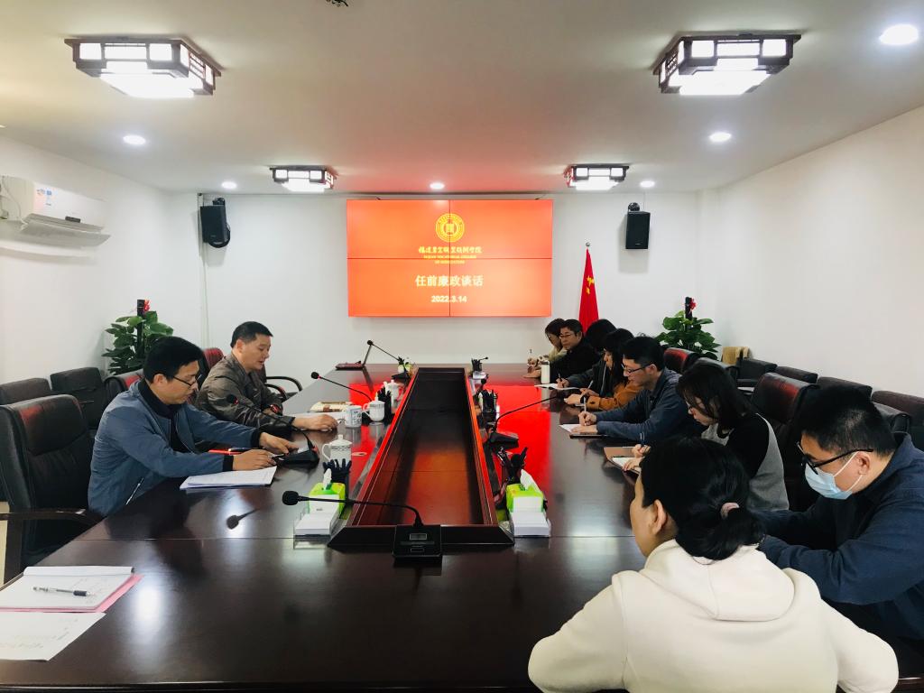 按照领导干部廉洁从政有关规定,3月14日,学院召开新任干部任前廉政谈话会。纪委书记陈坛春、纪委办干部以及8位新任职的副科级以上干部参加会议。会议由纪委办朱海军主持。