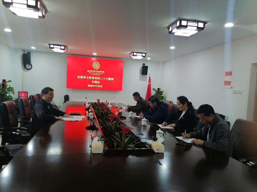 11月4日,校纪委召开纪委会议,深入学习贯彻党的二十大精神,进一步研究部署下一步工作。校纪委书记陈坛春主持并讲话,全体纪委委员参加学习。