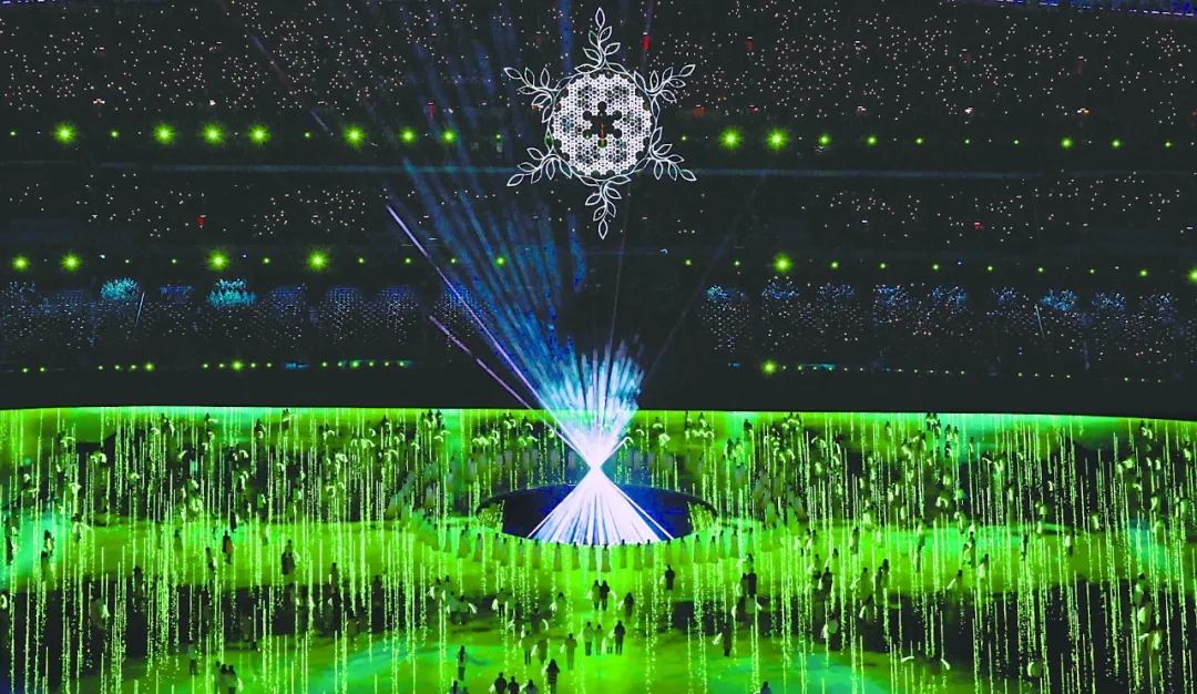 图为北京冬奥会闭幕式上的“折柳寄情”环节,折柳在中华文化中表达依依惜别之情,具有悠久历史。在本届冬奥会的建筑、服装、火炬等方方面面,都能见到中华文化元素。新华社记者 李贺 摄