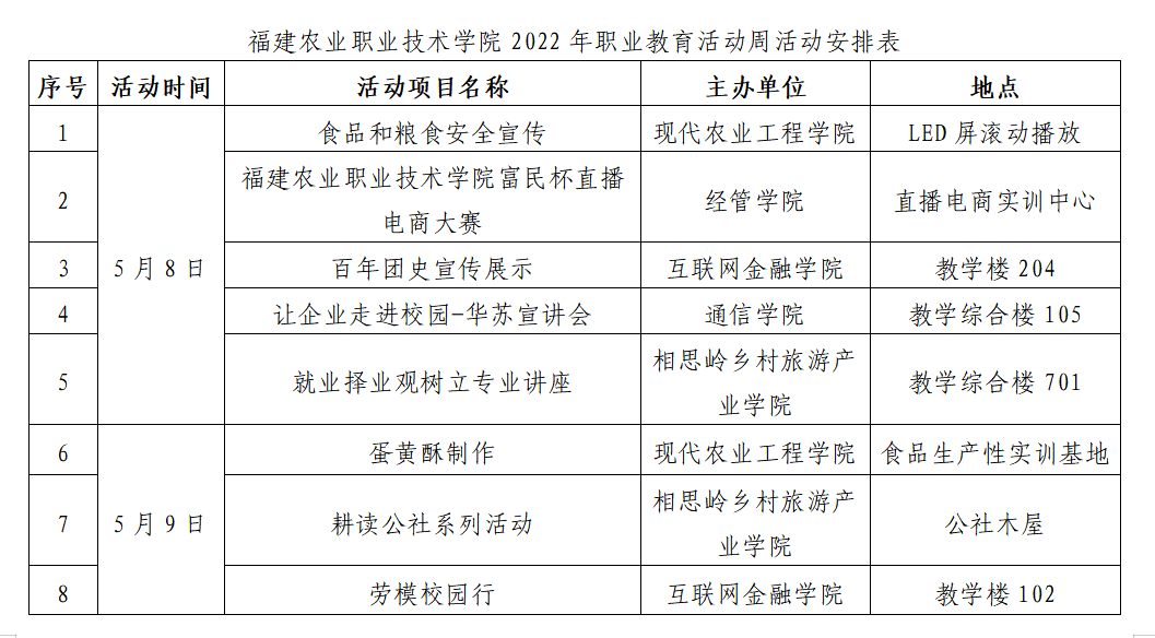 活动期间,学院将开展内容丰富的各类技能宣传、展示、知识讲座、技能竞赛等活动,积极宣扬新的职业教育法主要内容,充分展示我校职业教育成果。具体安排详见:Beat365中文官方网站2022年职业教育活动周活动安排表。