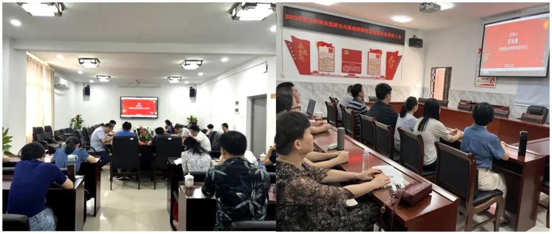 2022年9月8日上午,我校分别在闽台楼605和首山校区经管第二会议室组织收看由教育部职业教育发展中心主办的全国职业院校公共基础课课程思政集体备课线上直播会。副院长周雄,教学科研处处长林立忠,各二级学院分管教学副院长、教研室主任、专业带头人,教学科研处相关人员参加了会议。