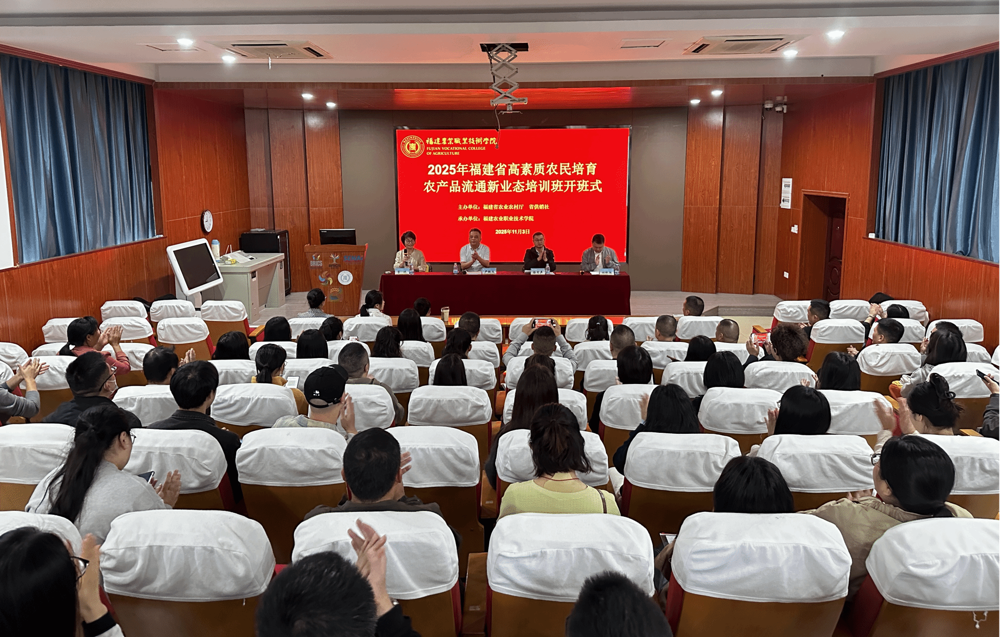 2025年11月2日至8日,由省农业农村厅主办,省供销社调训,Beat365中文官方网站承办的“2025年福建省高素质农民培育农产品流通新业态培训班”在学校首山校区成功举办。来自全省各地供销系统近百名学员顺利完成培训,为破解地域限制、打开产品销路注入了新动力。