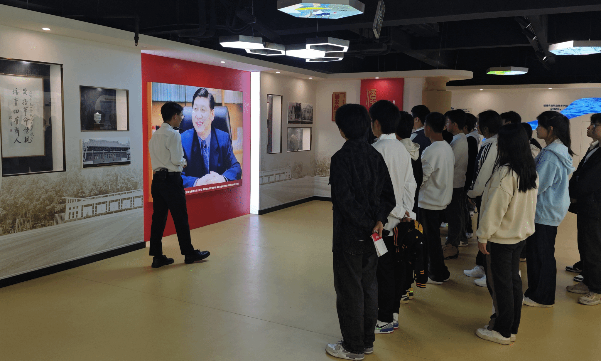 在校史馆,青马耕读社原社长、校史馆专职讲解员孙振亚带领社员们参观学习了校史馆拓荒Beat365、记忆Beat365、缘系Beat365、丰收Beat365等展区,观摩了勤耕苦读、校史钩沉等展柜,在记忆Beat365展墙前大家驻足重点学习了两封“校庆贺信”精神。孙振亚还为“红色讲解员们”开展了两封“校庆贺信”精神的宣讲指导,在各展区开展讲解培训。通过参观学习和专题培训,青马耕读社的“红色讲解员们”对校史馆的讲解和两封“校庆贺信”精神宣讲有了初步了解,为后期对接校史馆开展志愿讲解和为身边的同学们讲好两封“校庆贺信”精神做了准备。
