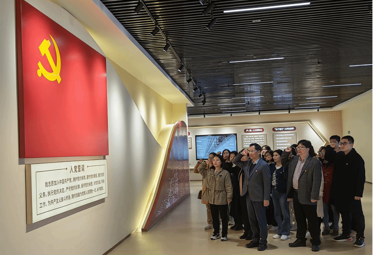 29日上午,实践队赴“晋江经验馆”参访学习。在讲解员生动的讲解和科技感十足的多媒体渲染下,教师们近距离沉浸式地感受了习近平在福建工作期间,曾六年七次深入晋江,进基层、下企业、访农村的生动实践,重温了习近平总书记提炼总结的以“六个始终坚持”和“正确处理好五大关系”为核心要义的“晋江经验”,全方位了解了“晋江经验”的形成背景、提炼过程、实践探索、理论思考与重大成就。在主题展厅前,王振亮副书记带领全体教师党员重温入党誓词。