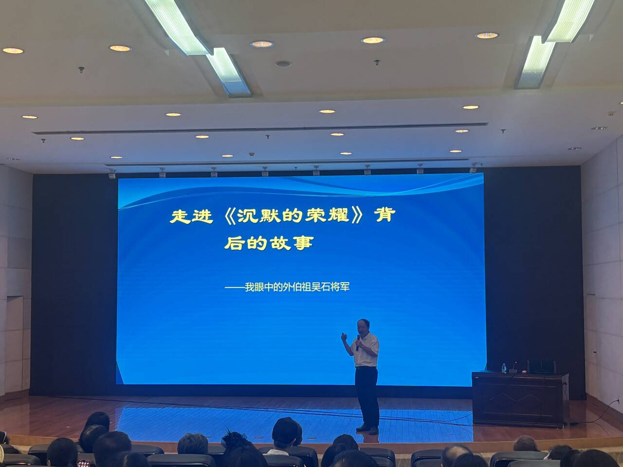 接着,施维平先生讲述吴石将军的生平、清廉简朴的家风、《沉默的荣耀》拍摄始末等,从珍贵的家族记忆,隐蔽战线家人的遭遇,揭示剧集未呈现的历史细节,让参会人员更近距离感受历史人物,感受那段峥嵘岁月的不易。