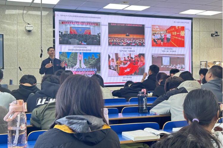 12月25日下午,校纪委书记陈坛春以“全面从严治党”为主题,在教学楼(1)701教室为2023级计算机网络技术和物联网应用技术专业的学生讲授了一堂精彩的思政课。
