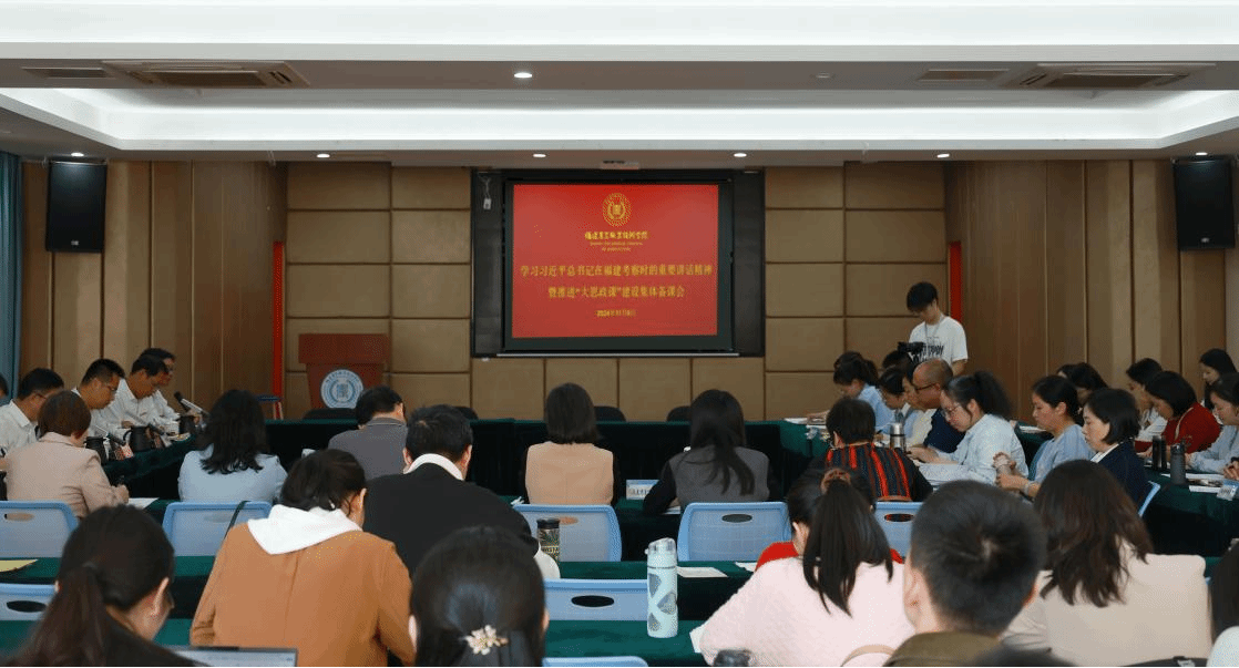11月6日下午,学院在创业大讲坛召开学习习近平总书记在福建考察时的重要讲话精神暨推进“大思政课”建设集体备课会。学院党委书记杨振坦、院长何东进、党委副书记王振亮、纪委书记陈坛春,马克思主义学院、纪委办负责同志,各教学单位分管教学副院长、骨干教师代表及马克思主义学院全体思政课教师参加了活动。备课会由马克思主义学院院长江明辉主持。
