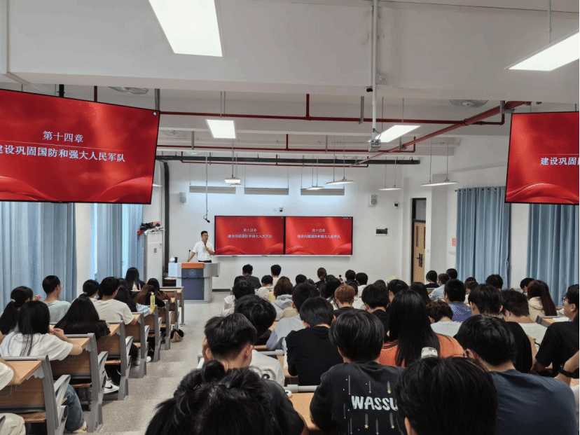 杨书记紧密结合近期印巴冲突、台海局势等时政热点和复杂多变的国际、国内形势,围绕国防与军队建设的核心议题,深入浅出地为学生们讲解了“为什么要建设巩固国防和强大人民军队”“怎样建设巩固国防和强大人民军队”“人民军队怎样捍卫国家主权、安全、发展利益”等重要内容。杨书记还结合大数据技术专业特色,分析了信息技术在现代国防建设中的重要作用,鼓励同学们努力学习专业知识,未来能够运用大数据、人工智能等前沿技术,为国防科技事业贡献力量。