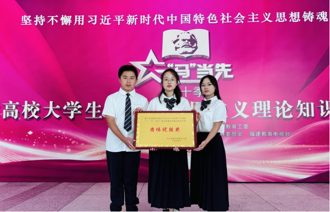 9 月 27 日,由中共福建省委宣传部、省委教育工委主办,福建省高校思想政治理论课教学指导委员会、福建教育电视台承办,福建农林大学协办的第十季福建省高校大学生学习马克思主义理论 “一‘马’当先” 知识竞赛总决赛在福建农林大学仓山校区圆满落幕。我校陈娜仙、郑师镔、朱佳芬等三位同学代表学院参加省级总决赛,荣获高职高专组团体优胜奖。