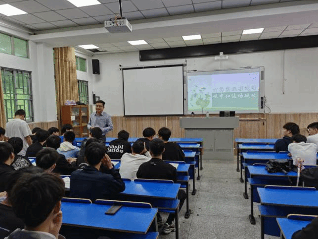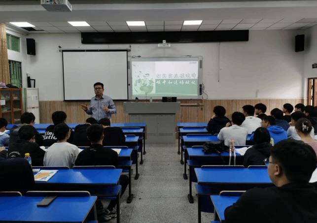 侯副院长以“打好实现碳达峰碳中和这场硬战”为题,以幽默的语气接地气的话题导入极端天气带来的气候变化导致人类生存发展面临的严峻挑战等问题,通过校园建设、就业率、过度消费等身边案例,结合近期发生的时政热点,引导学生认识到坚定不移地发展“双碳”,从身边小事做起,打好这场硬战,是我们的使命所在、责任所在。侯副院长呼吁:要坚定实现碳达峰碳中和,为人类可持续发展、生态文明建设贡献中国力量。