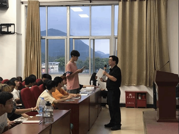 江明辉院长围绕“百年未有之大变局”、“我将无我,不负人民”、“两个确立”三方面内容,向学生系统地讲述了“百年未有之大变局”的提出以及“大变局”存在的机遇与危险。通过播放习近平主席回答意大利众议院会长菲科提问的视频、讲述习近平总书记心系人民群众、清正廉洁的多个故事,生动诠释了习近平总书记“我将无我,不负人民”的崇高情怀。课堂上,他还通过设置抽签问答这一新颖的环节,引导学生对“大变局”、“无我”以及习近平总书记在福建的故事等15个相关问题进行思考和讨论,使学生更加明确“两个确立”的重要性和决定性意义。同学们反响热烈,课堂氛围十分活跃。