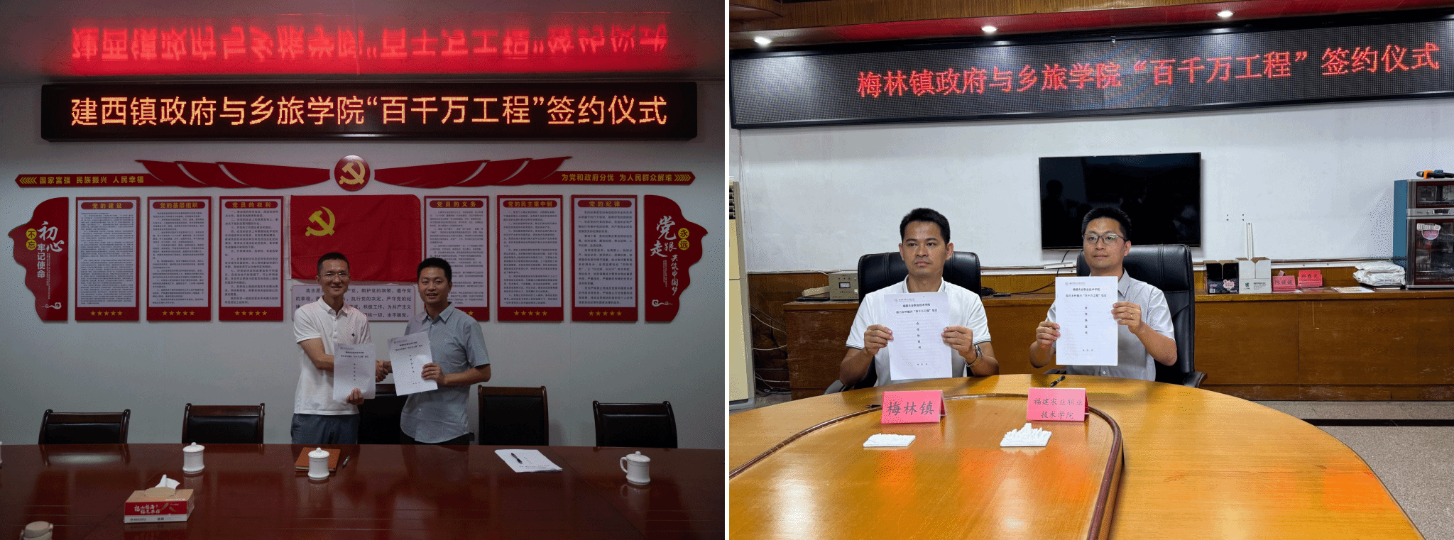 实践团队紧扣“专业赋能振兴,共筑美好乡村”主题,结合学院专业知识和实践经验,学习运用“千村示范、万村整治”工程成功经验,共同探讨乡村振兴的创新发展策略。实践团不仅“因地制宜”,提出具有专业特色的方案,还与顺昌县建西镇、南靖县梅林镇、德化县高阳村达成“百千万工程”签约,进一步深化合作,共同推动乡村振兴事业。