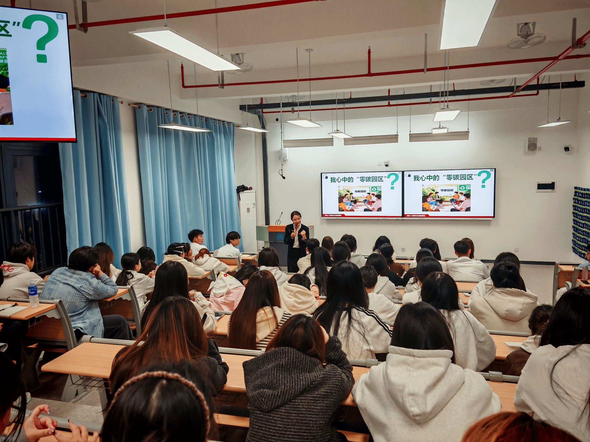 Beat365郑丽萍老师紧紧围绕学习贯彻党的二十届四中全会精神,结合高职学的特点,聚焦“十五五”时期经济社会发展的“美丽中国建设取得新的重大进展”这一目标,开展题为“驭‘碳’索‘绿’,向美而行”的主题宣讲,运用鲜活的本土案例,从加快构建实施碳排放总量和强度双控制度、加快能源绿色低碳转型、加快产业结构绿色低碳转型及加快生产生活方式绿色低碳转型等四个维度讲清楚“十五五”时期美丽中国建设的重要部署。